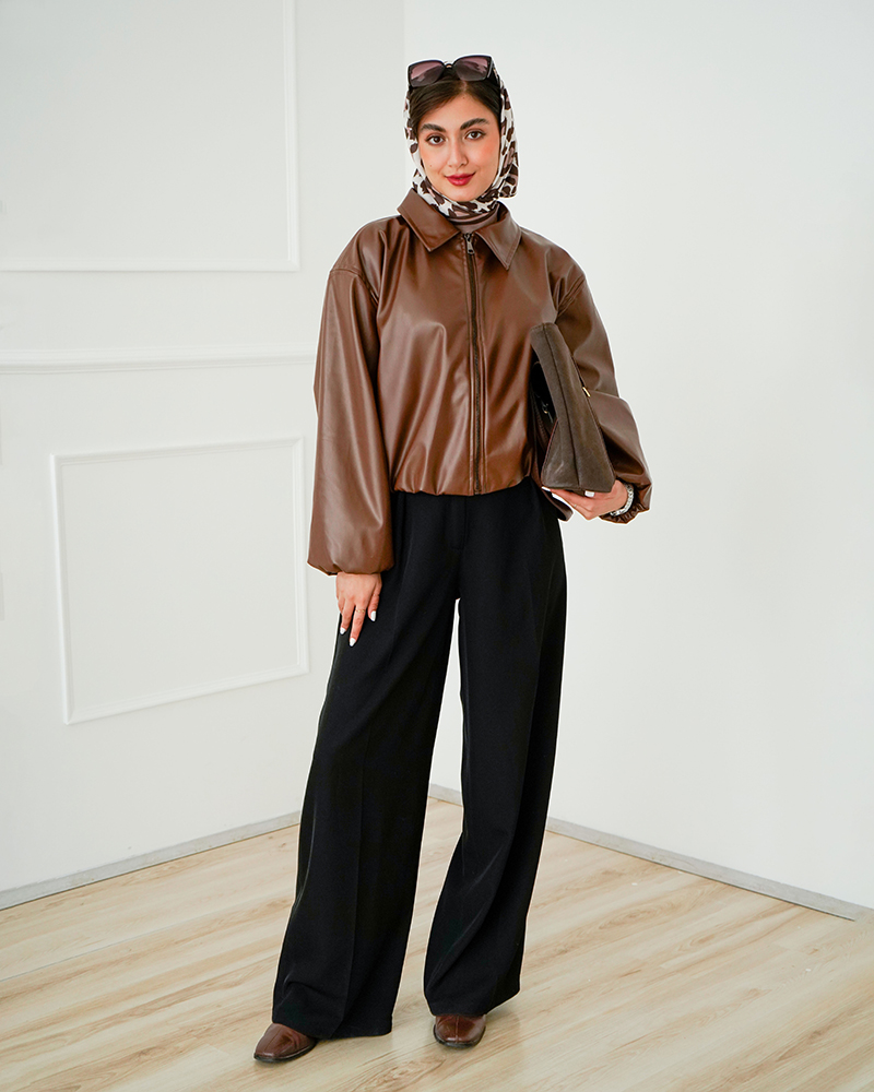 - توضیحات محصول: جنس بامبر چرم می باشد. بامبر یقه شکاری آستین بلند و آستر دار می باشد. این محصول جلو زیپی و قسمت سر استین و جلو لباس کشی می باشد. جیب های بامبر کاربردی هستند.