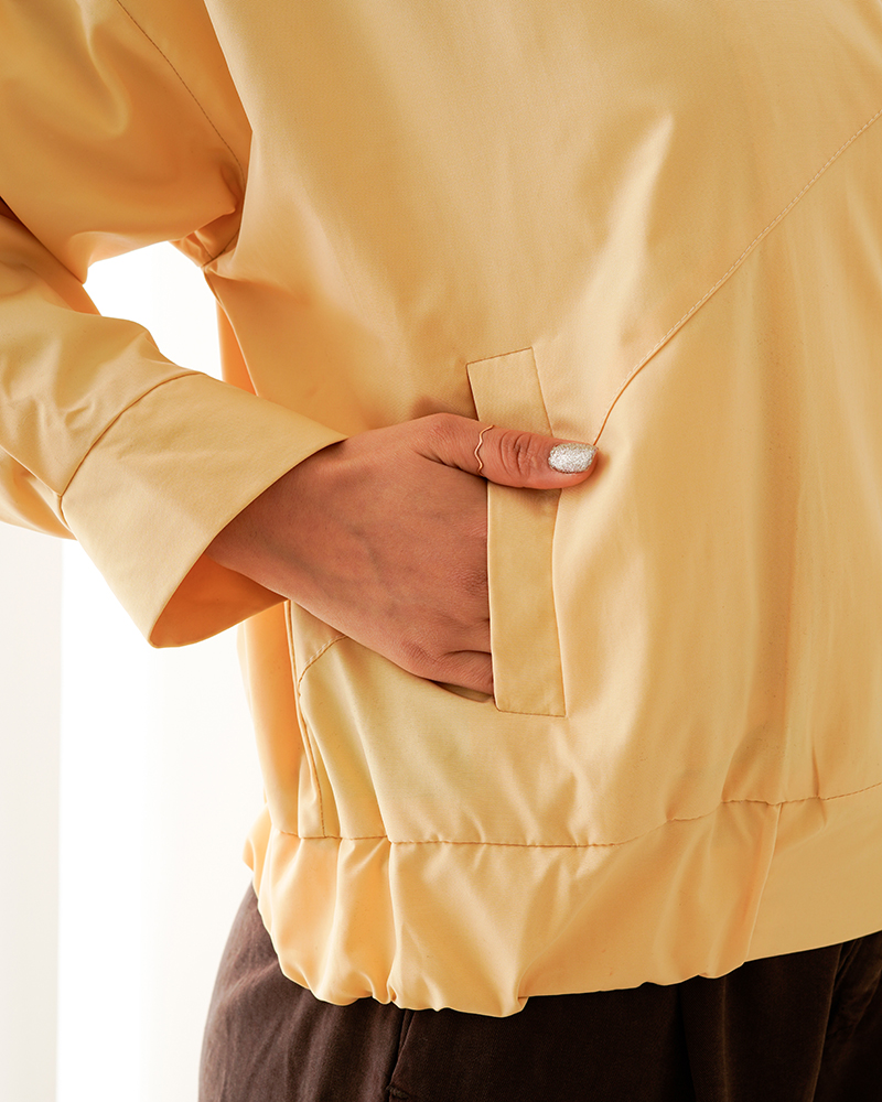 - توضیحات محصول: جنس بامبر، مموری می باشد. بامبر یقه مردانه و آستین بلند است. کمر بامبر کشی است. بامبر جلو زیپی و دارای جیب های کاربردی است.