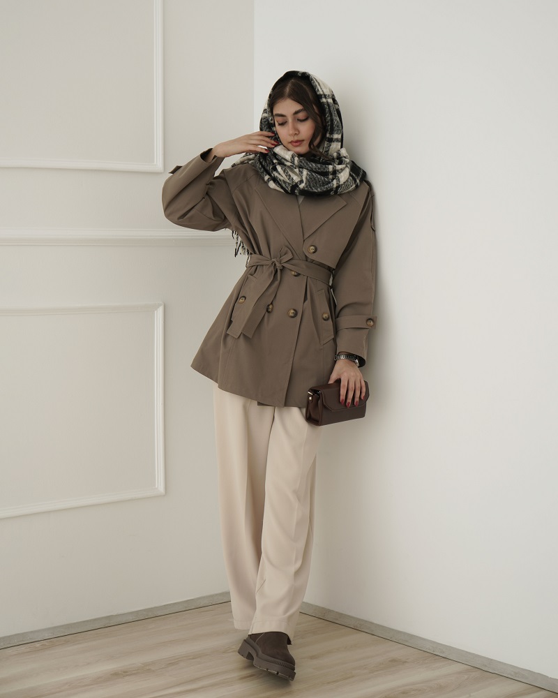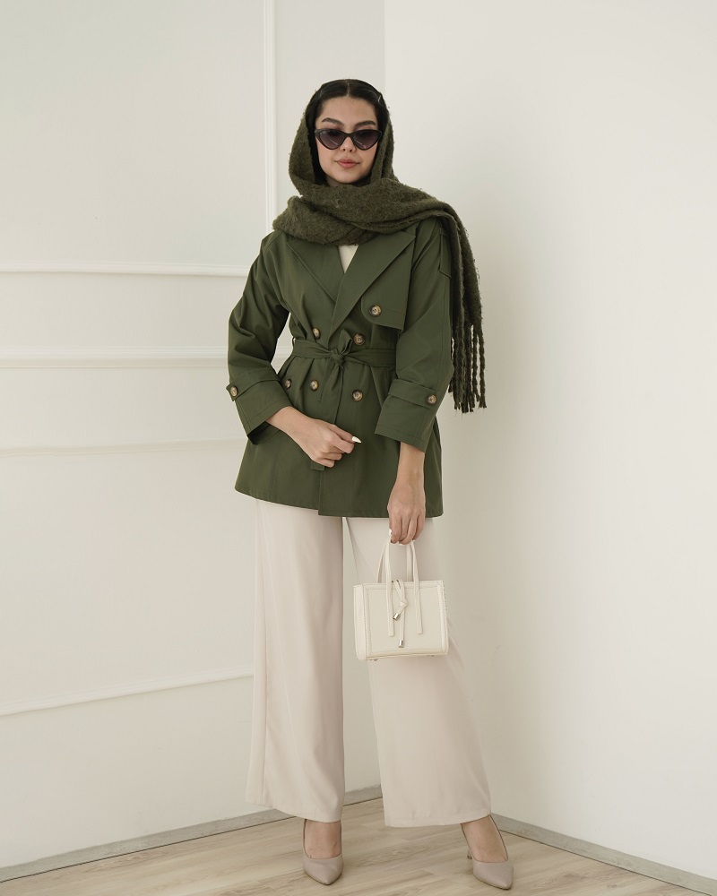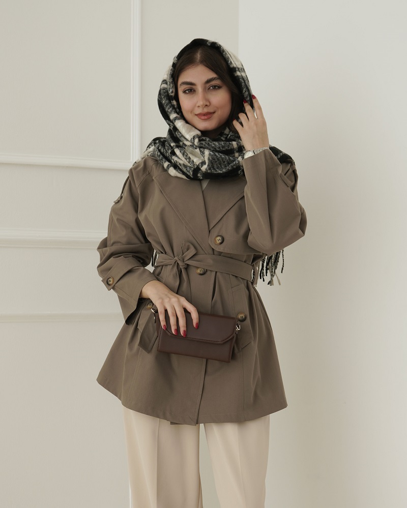 - توضیحات محصول: جنس بارونی کجراه می باشد. بارونی یقه انگلیسی است. این محصول دارای دو جیب کاربردی و یک کمربند از جنس لباس می باشد.