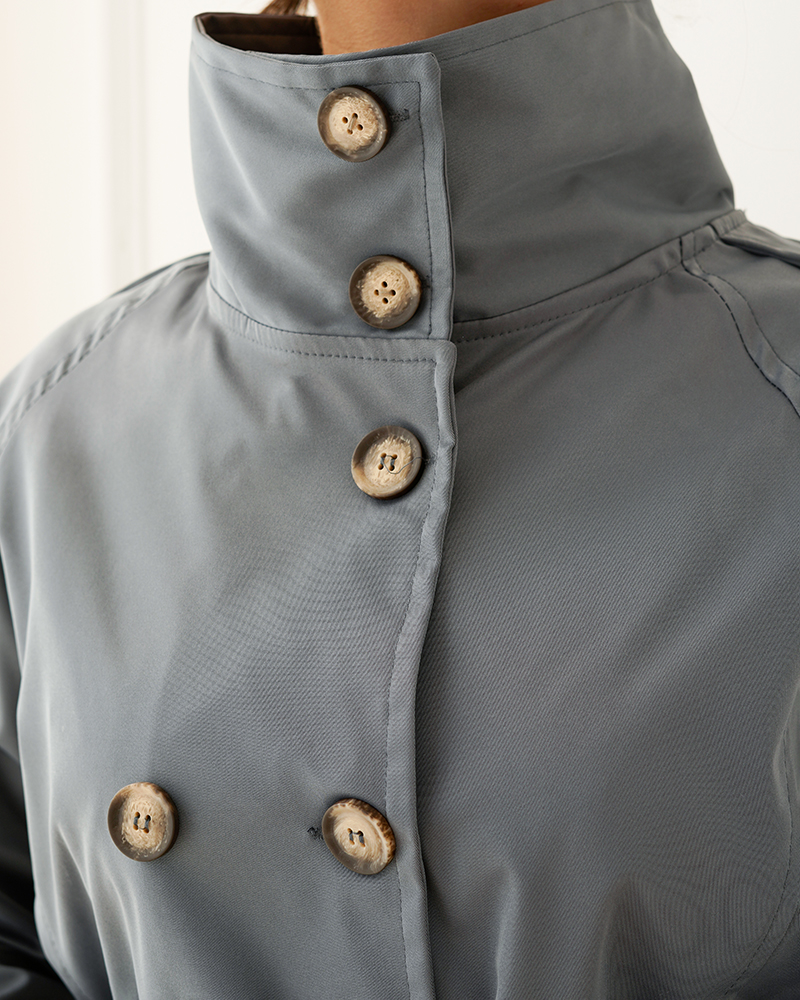 - توضیحات محصول: جنس بارانی سانتانا می باشد. بارانی یقه مردانه و جلو دکمه است. این محصول دارای دکمه ها و جیب های کاربردی می باشد. بارانی دارای یک کمربند از جنس لباس می باشد.