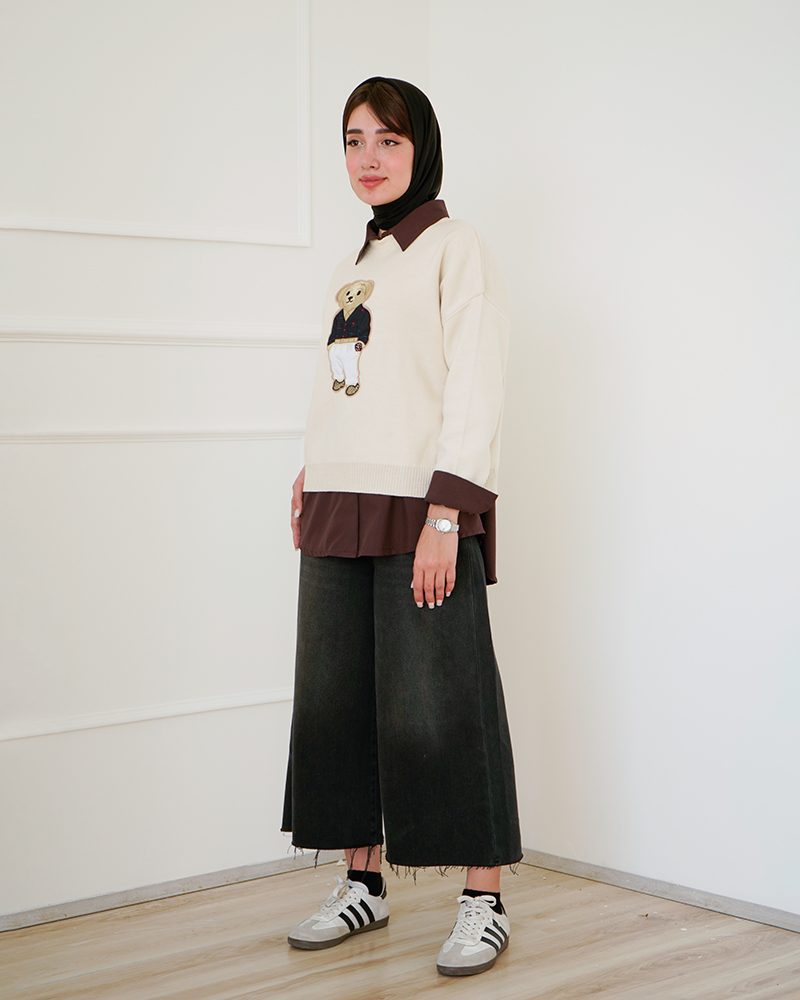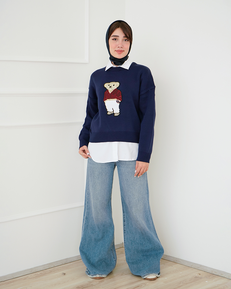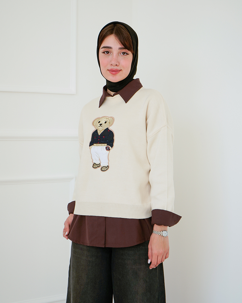 - توضیحات محصول: جنس بلوز بافت می باشد. بلوز یقه گرد و آستین بلند است. طرح روی لباس دوخته شده است.