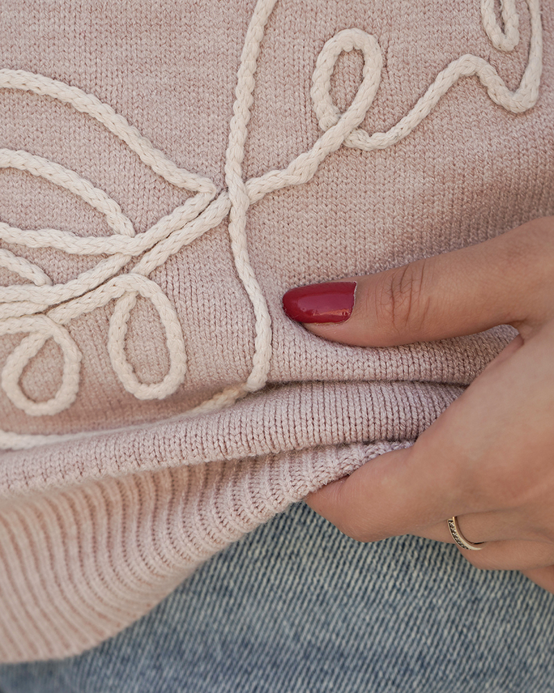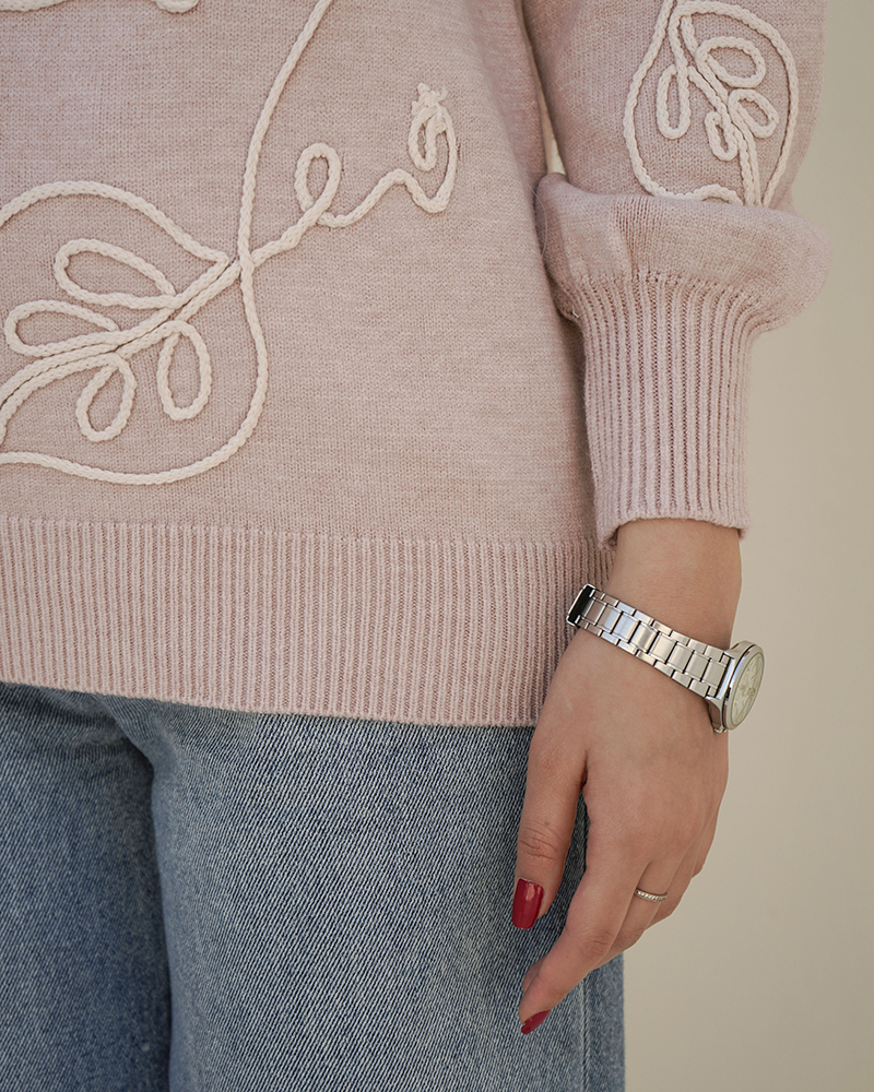 - توضیحات محصول: جنس بلوز بافت می باشد. بلوز گرم بالا و یقه گرد می باشد. طرح روی بلوز اپلیکه طنابی می باشد. این محصول بسیار با کیفیت و گرم مناسب استفاده روزمره می باشد.