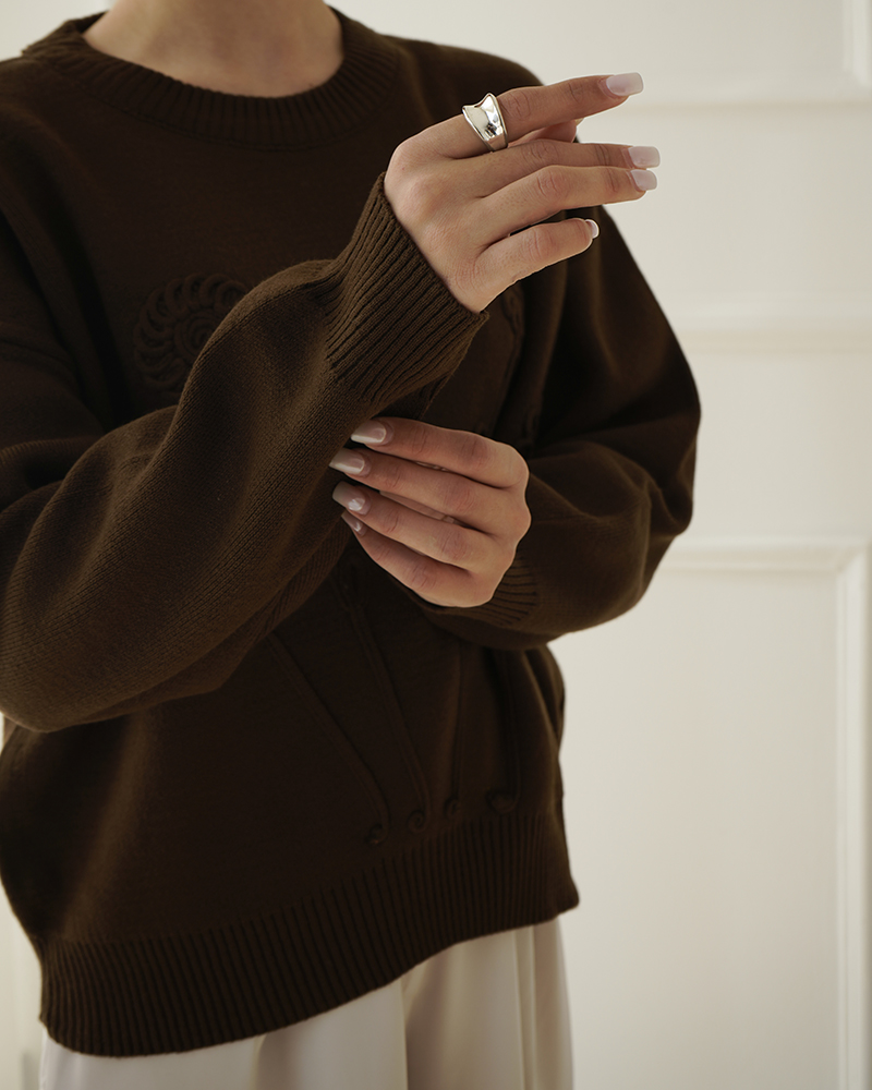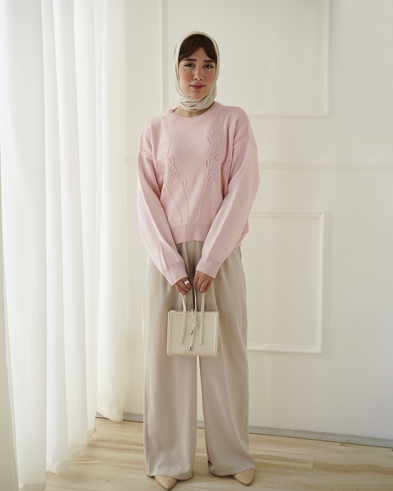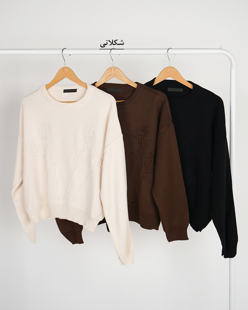 - توضیحات محصول: جنس بلوز، بافت است. بلوز، یقه گرد و آستین بلند می باشد. طرح های روی بلوز، اپلیکه طنابی است. این محصول کشسانی بالایی دارد.