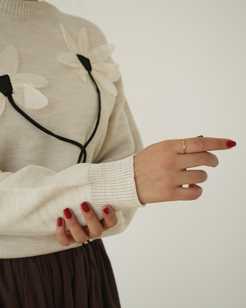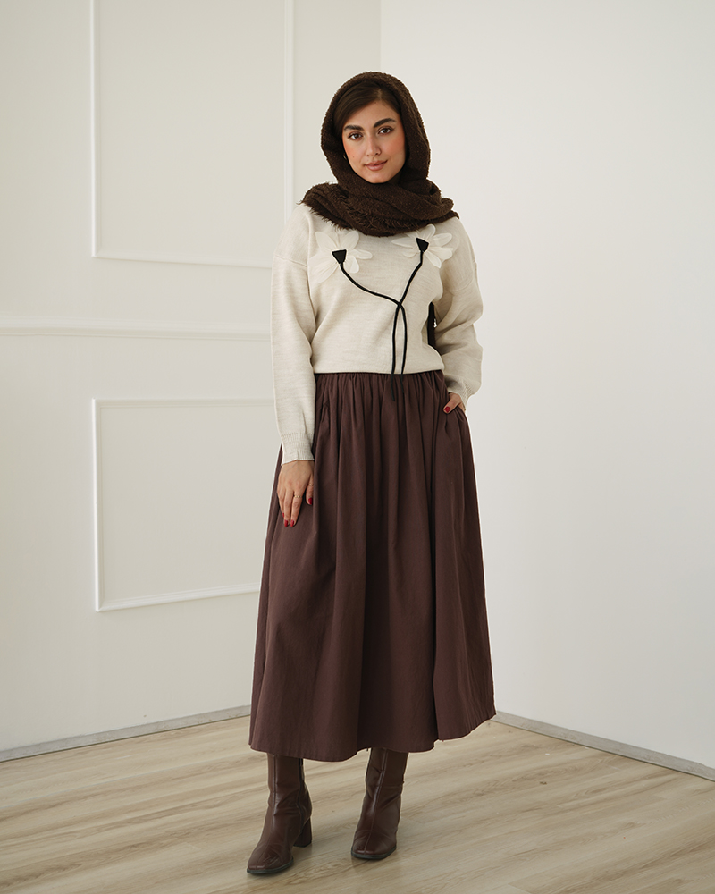 - توضیحات محصول: جنس بلوز، بافت نرم است. بلوز، یقه گرد و آستین بلند می باشد. روی بلوز تور و روبان کارشده است. این محصول کشسانی بالایی دارد.