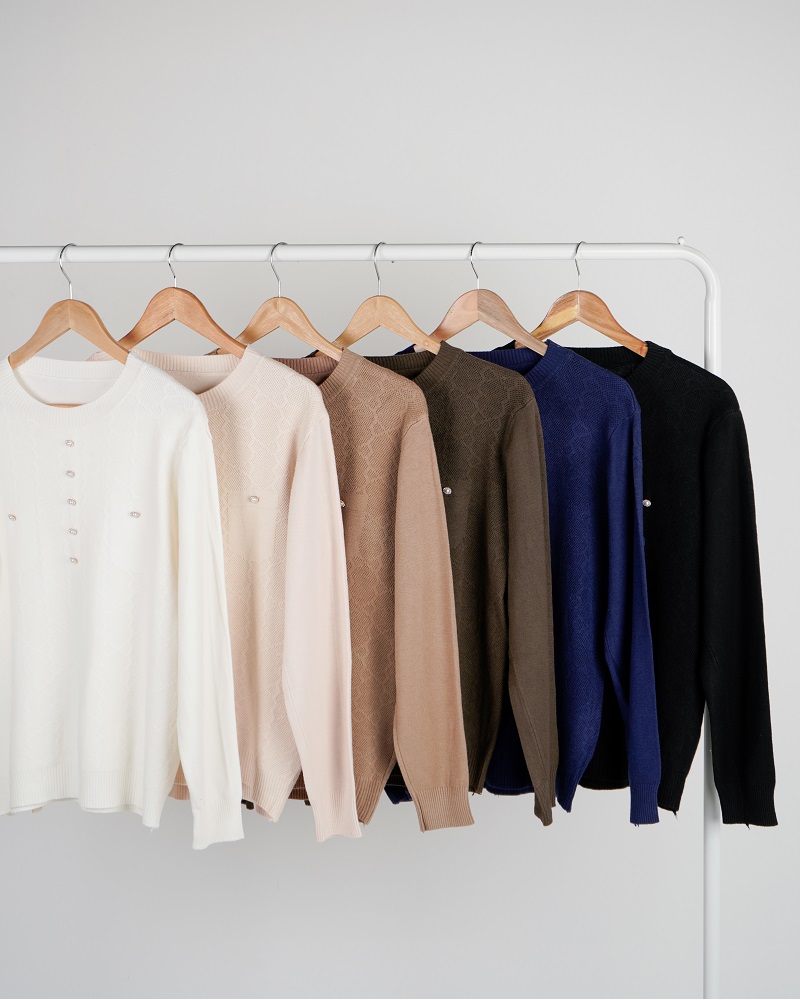 - توضیحات محصول: جنس بلوز بافت لطیف می باشد. بلوز یقه گرد ،آستین بلند می باشد. دکمه های روی بلوز نما هستند. این محصول دارای کشسانی بسیار بالا و گرم و بسیار با کیفیت می باشد.