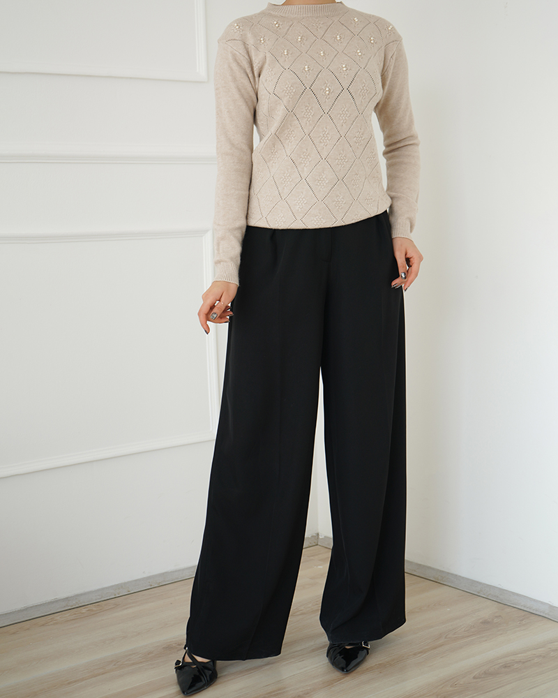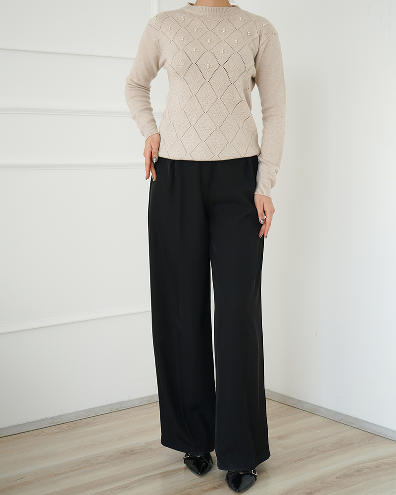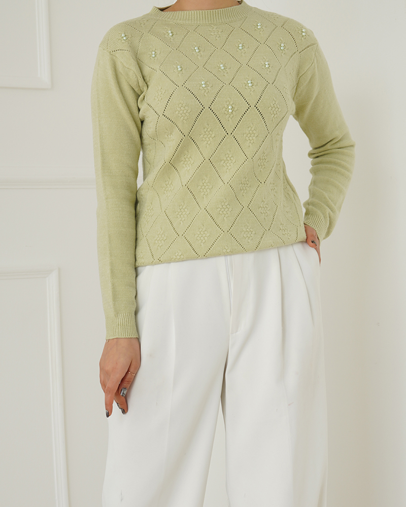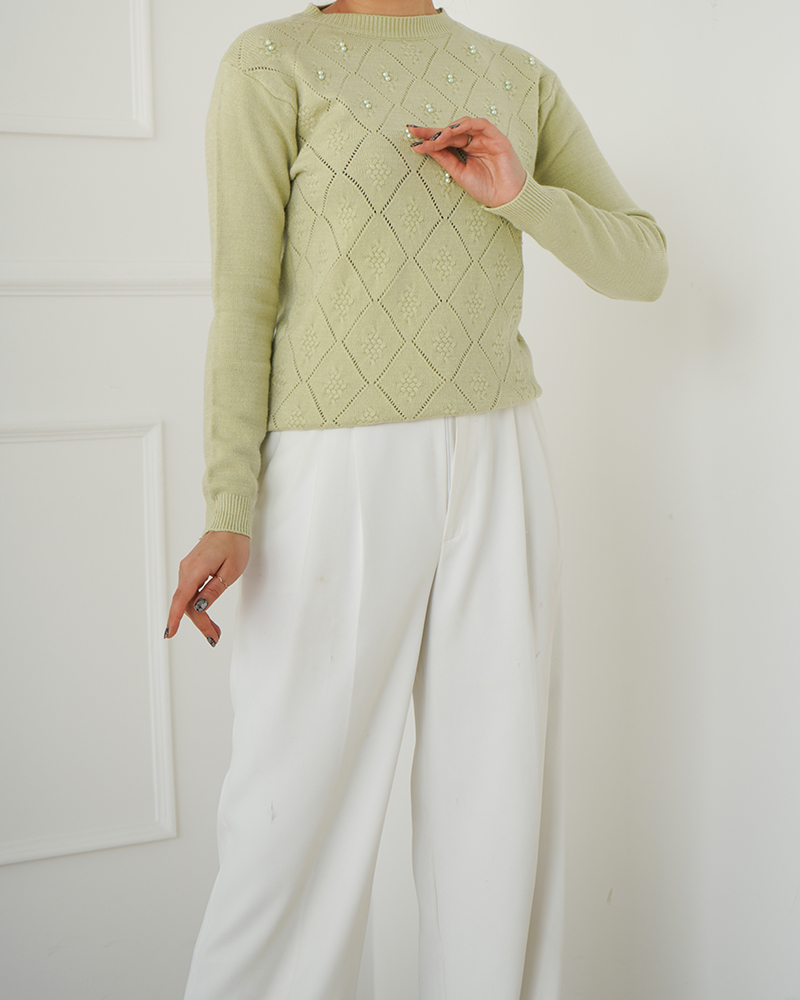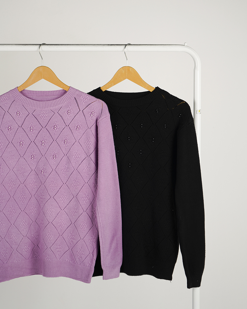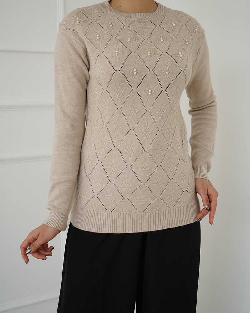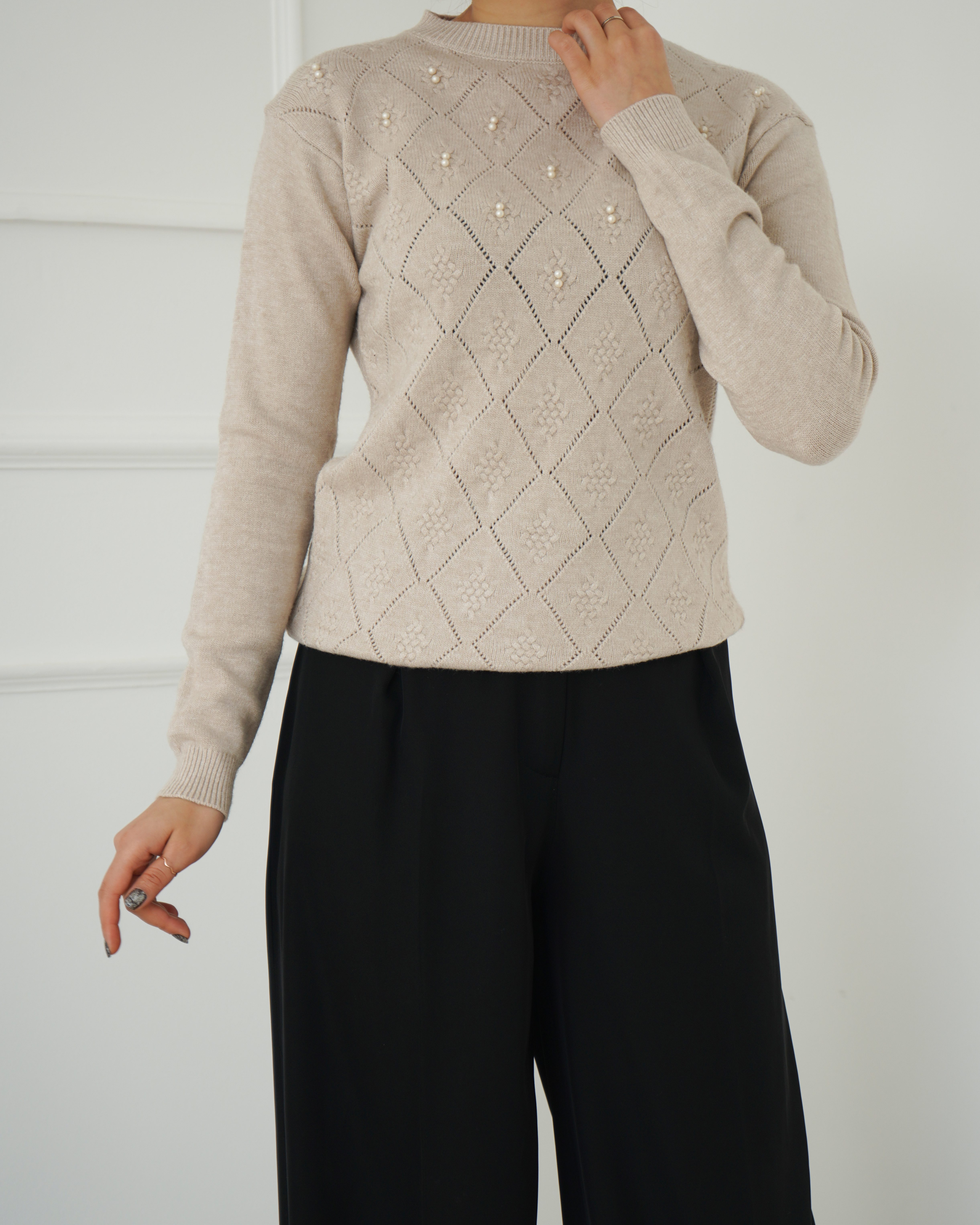 - توضیحات محصول: جنس بلوز بافت می باشد. بلوز یقه گرد و آستین بلند میباشد. مروارید های روی لباس پانچ شده می باشند. بلوز بافت بسیار نرم و لطیف و با کشسانی بالا می باشد.
