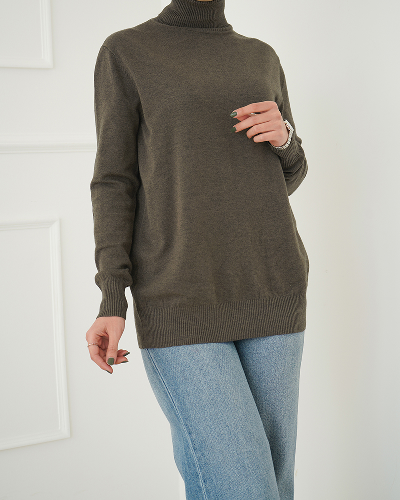 - توضیحات محصول: جنس بلوز، بافت لطیف است. بلوز، یقه اسکی و آستین بلند می باشد. این محصول کشسانی بالایی دارد.