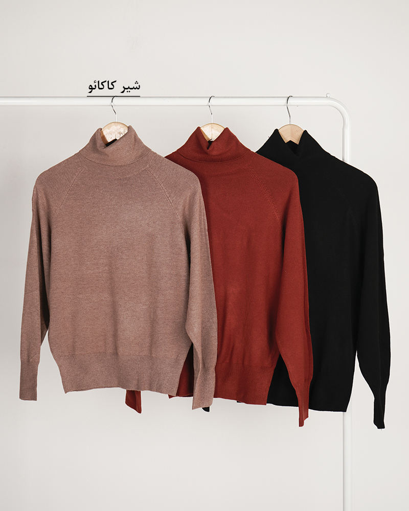 - توضیحات محصول: جنس بلوز، بافت لطیف است. بلوز، یقه اسکی و آستین بلند می باشد. این محصول کشسانی بالایی دارد.
