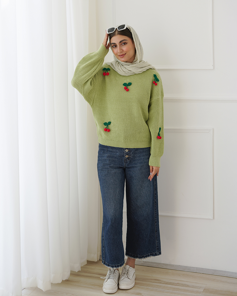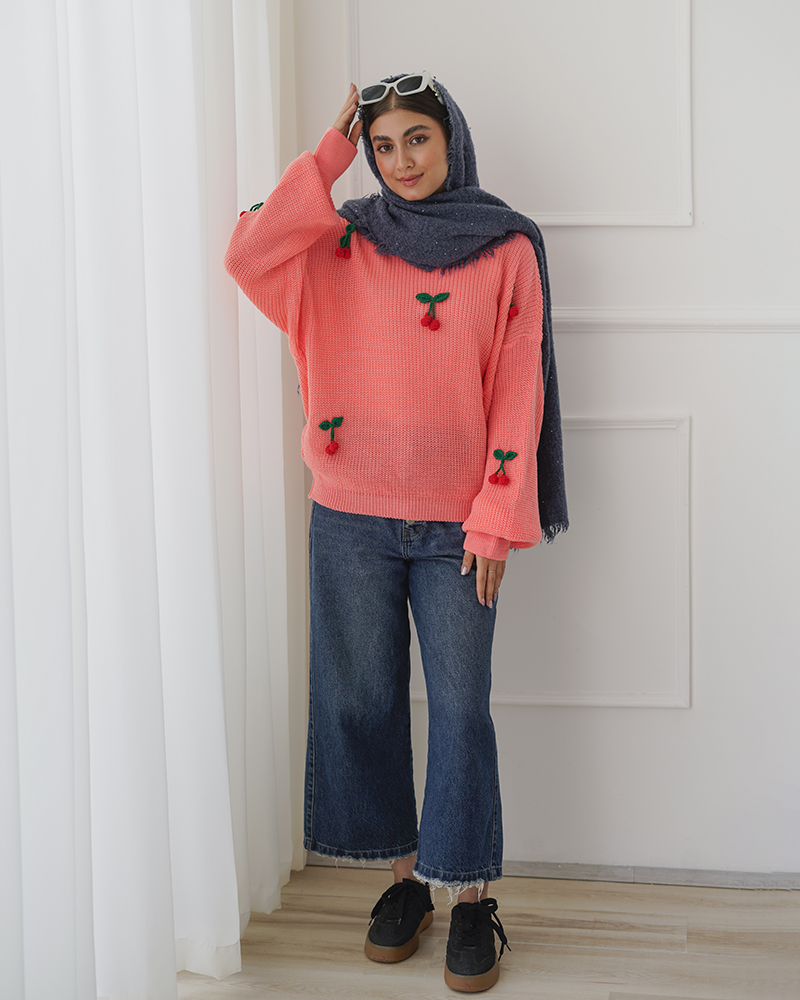 - توضیحات محصول: جنس بلوز بافت می باشد. بلوز یقه گرد و آستین بلند است. گیلاس های روی لباس برجسته می باشد.