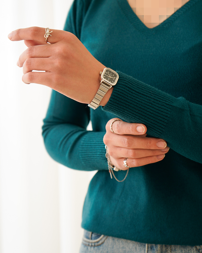 - توضیحات محصول: جنس بلوز، بافت لطیف است. بلوز، یقه هفت و آستین بلند می باشد. این محصول کشسانی بالایی دارد.