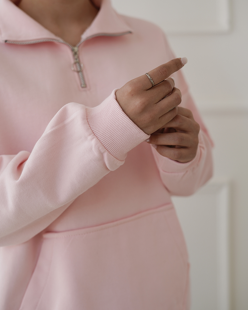 - توضیحات محصول: جنس بلوز دورس تو کرک می باشد. بلوز یقه نیم زیپ و آستین بلند می باشد. قسمت سر آسیتن و انتهای لباس کشبافت کار شده است.
