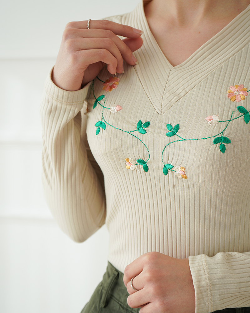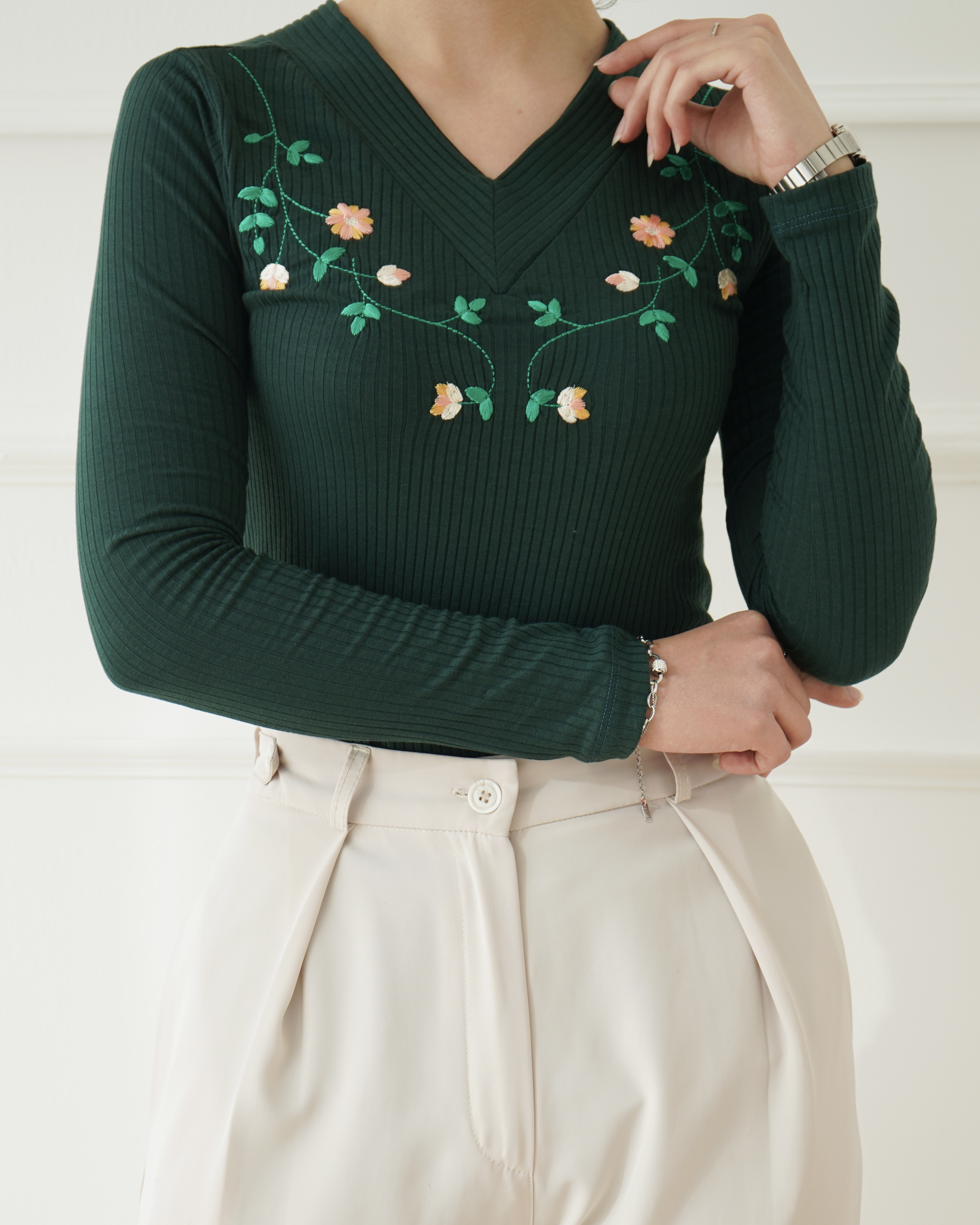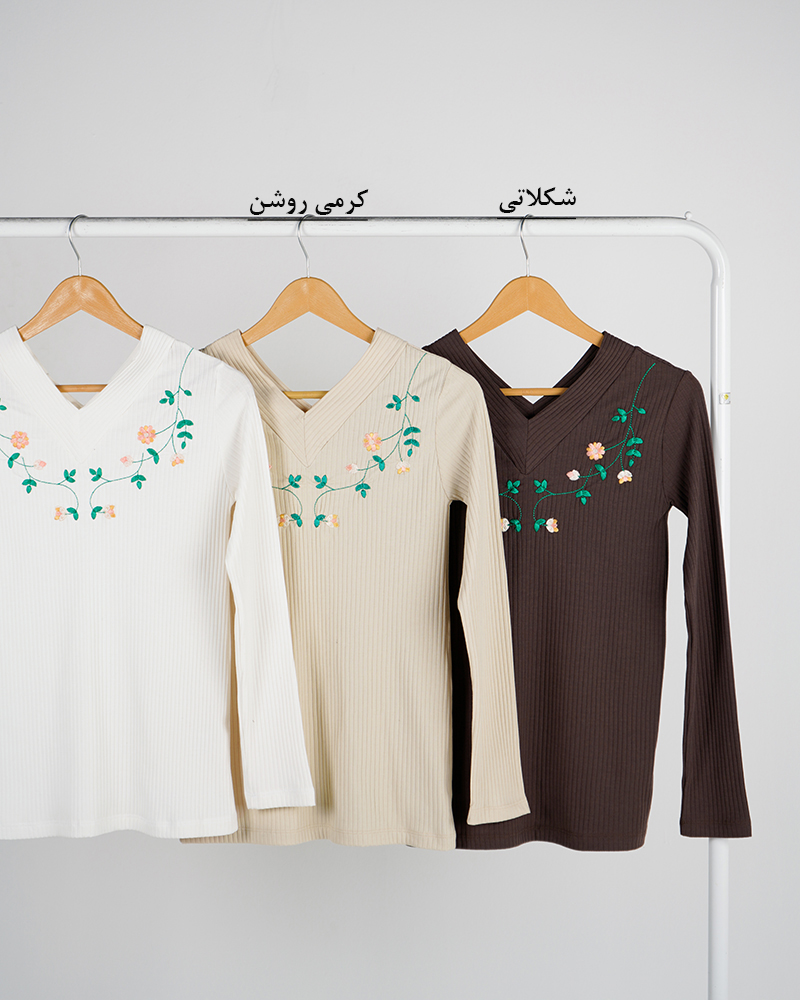 - توضیحات محصول: جنس بلوز، نخ پنبه کبریتی است. بلوز، یقه هفت و آستین بلند می باشد. طرح های روی لباس، گلدوزی است. این محصول کشسانی بالایی دارد.