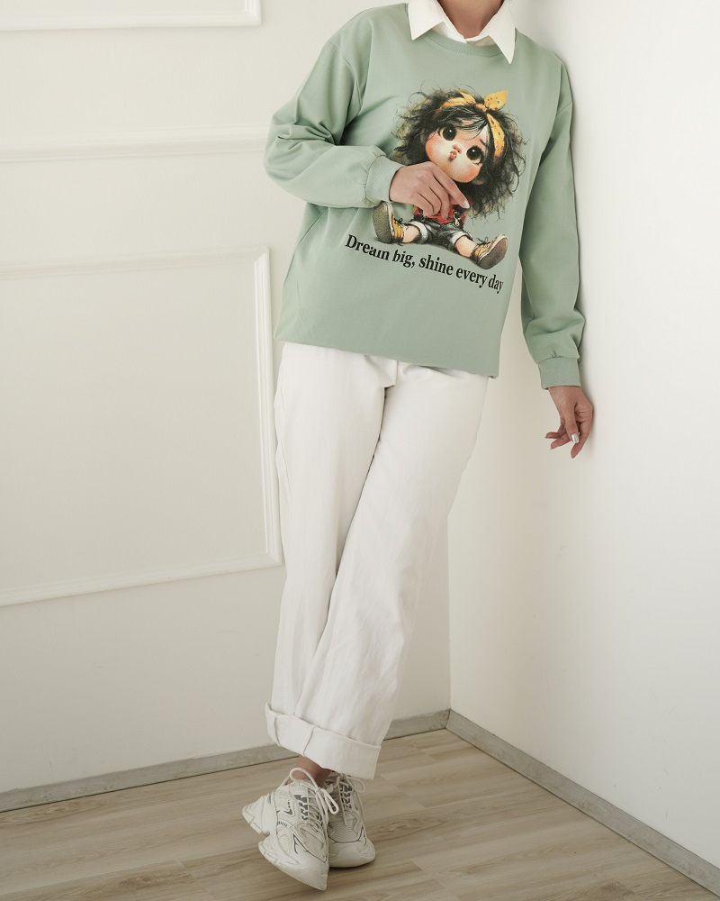 - توضیحات محصول: جنس بلوز، دورس دو نخ و پنبه است. بلوز، یقه گرد و طرح های بلوز، چاپی است. در قسمت های سر آستین و یقه و پایین لباس کشبافت می باشد.