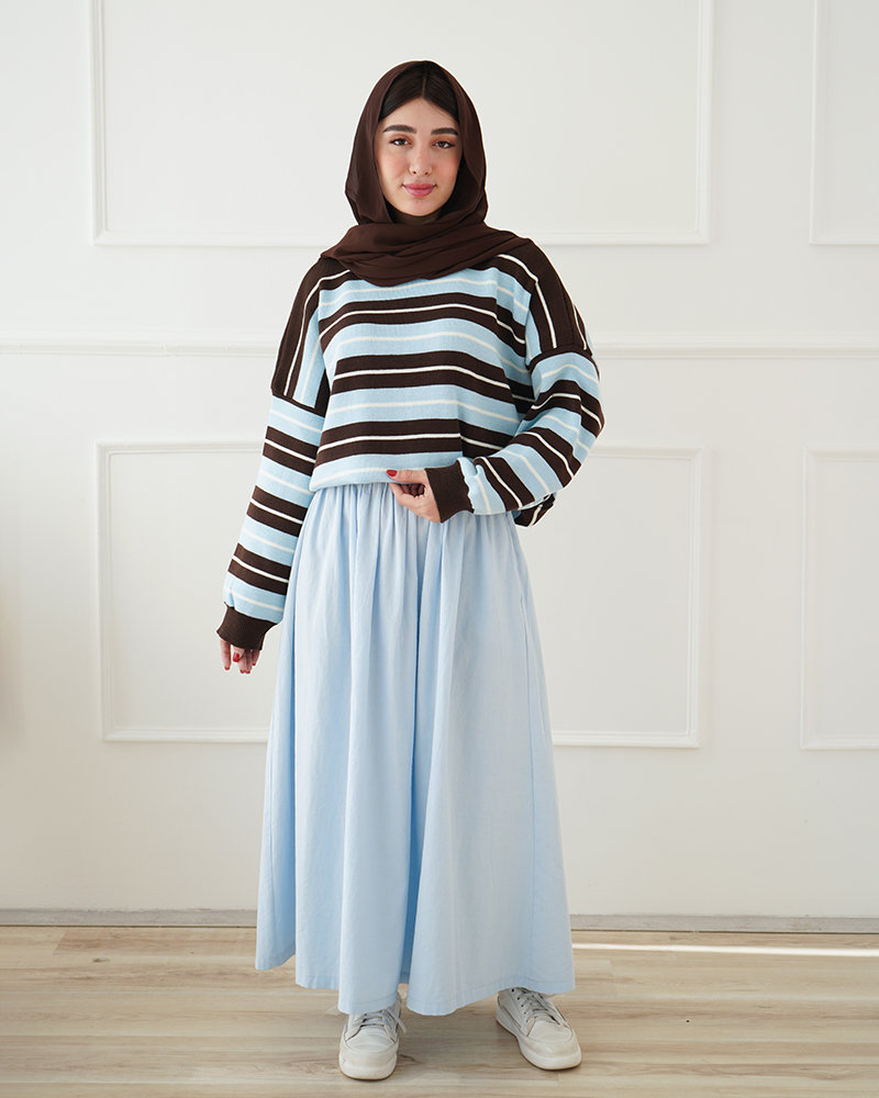 - توضیحات محصول: جنس بلوز بافت می باشد. بلوز یقه گرد و آستین بلند است. این محصول بسیار لطیف همراه با کشسانی بسیار بالا مناسب استفاده روزمره است.