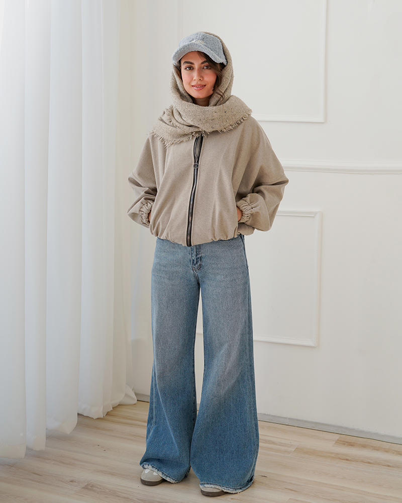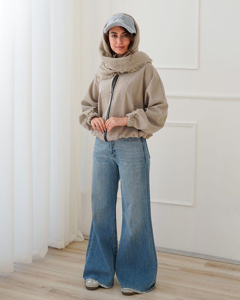 - توضیحات محصول: جنس بامبر، کجراه پشمی می باشد. بامبر جلو زیپی و قسمت سر آستین و کمر، کش دوزی شده است. دارای دو جیب کاربردی می باشد.