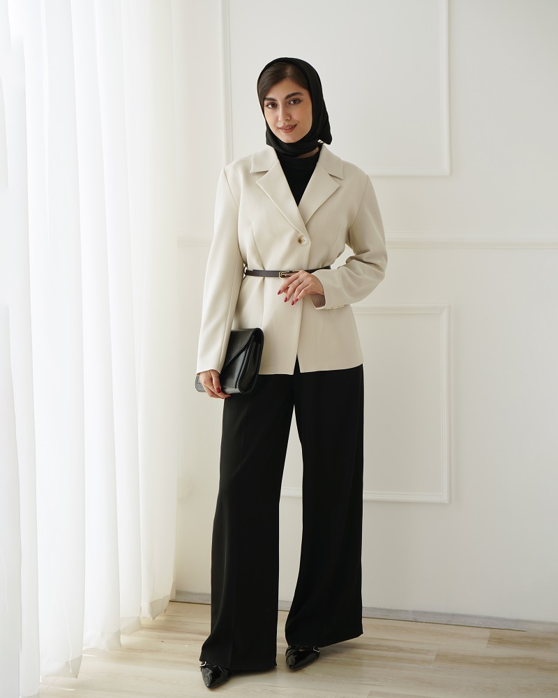 - توضیحات محصول: جنس کت کرپ مازراتی است. کت بسیار خوش دوخت ،یقه انگلیسی می باشد. دارای یک کمربند چرمی است. قسمت جلوی این کت جهت ایستایی بهتر آستر کشی شده است.