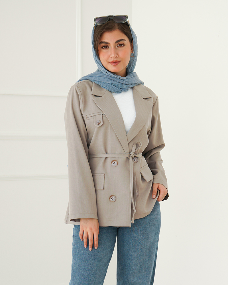 - توضیحات محصول: جنس کت بزایاق می باشد. کت یقه انگلیسی و قسمت جلوی کت جهت ایستایی بهتر لایی کوبی شده است. جیب ها و دکمه های قسمت جلوی کت نما می باشد. این محصول دارای یک کمربند از جنس لباس جهت تنظیم دور کمر می باشد.