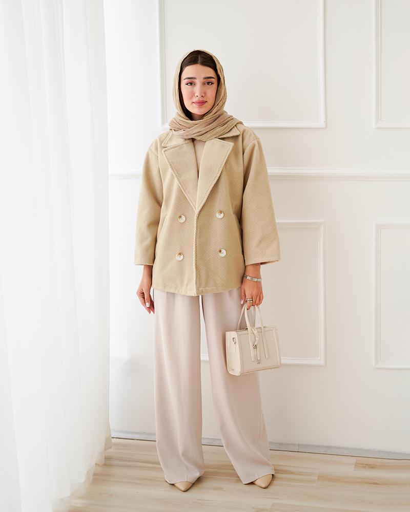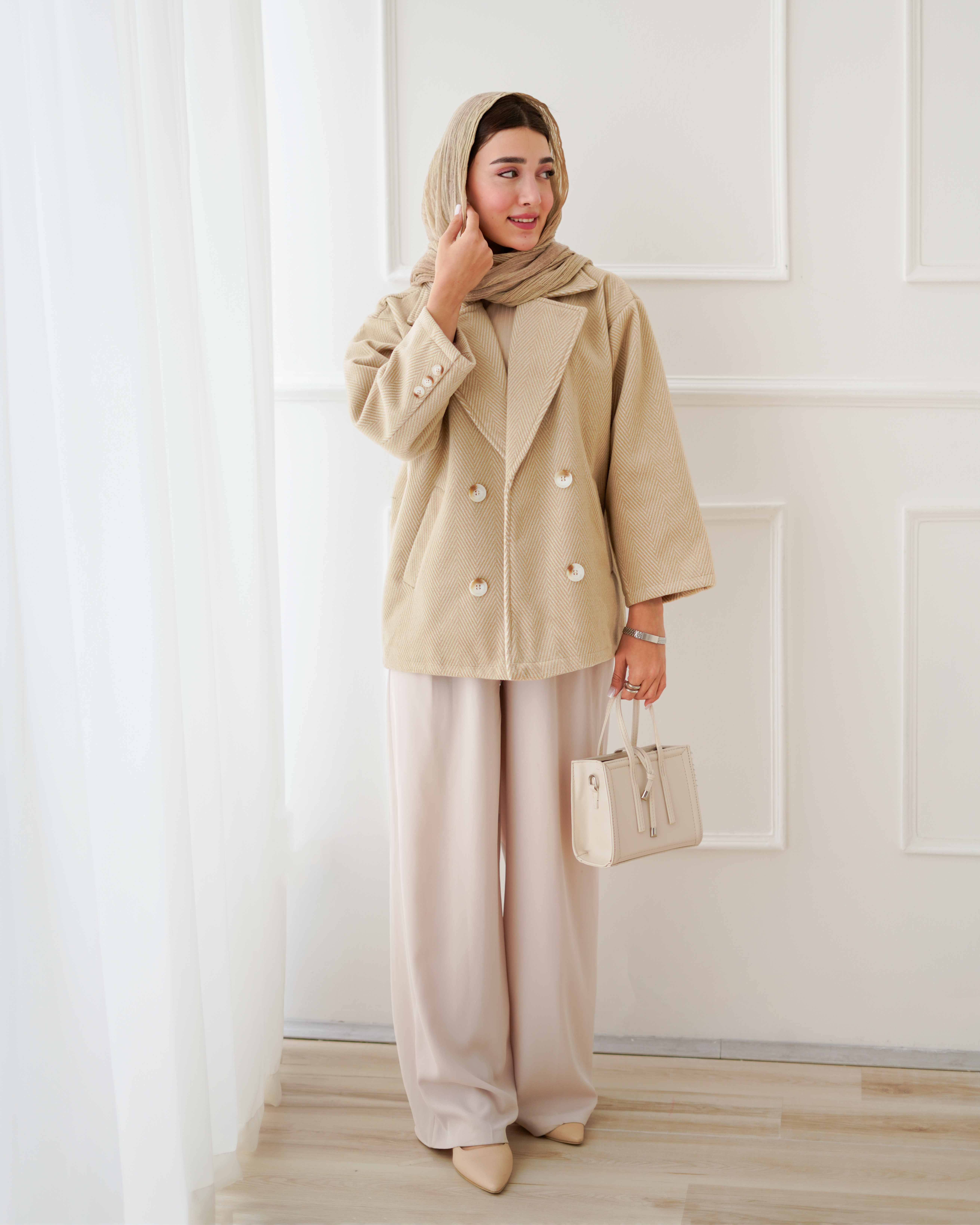 - توضیحات محصول: جنس کت فوتر جناقی می باشد. کت یقه انگلیسی و دارای آستر می باشد. دکمه های کت نما بوده و جیب ها کاربردی می باشد.