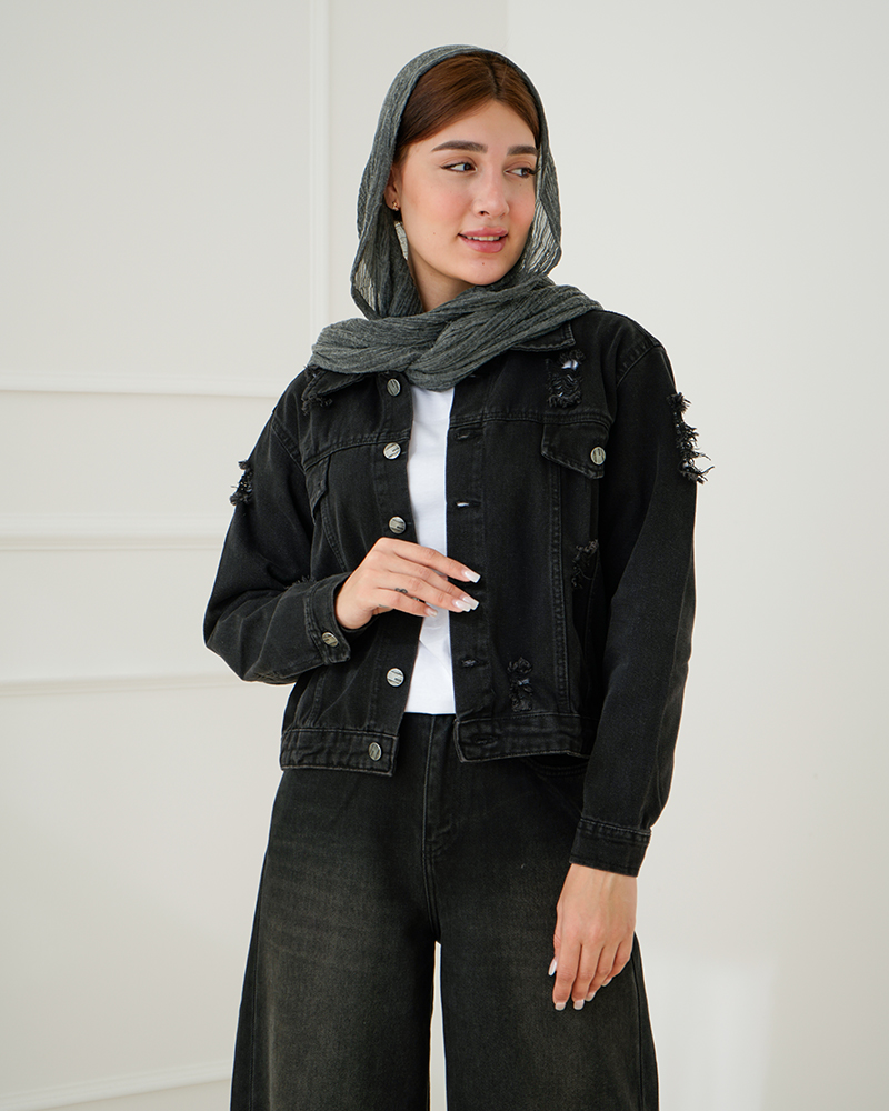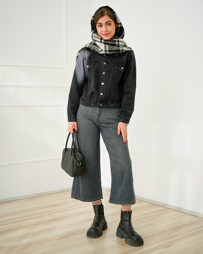 - توضیحات محصول: جنس کت جین می باشد. کت یقه مردانه و آستین بلند است. این محصول دارای دکمه های کاربردی در قسمت جلو و سر آستین می باشد. زاپ ها بدن نما بوده و جیب ها نما می باشد.