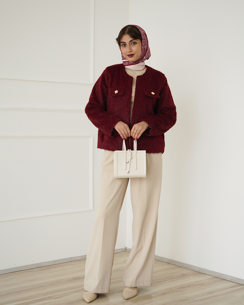 - توضیحات محصول: جنس کت،خز است. کت، آستردار می باشد. جیب ها نما هستند.
