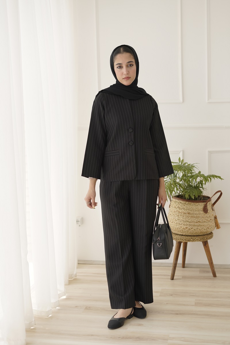 - توضیحات محصول: جنس ست دیپلمات کجراه می باشد. دکمه ها و جیب های کت کاربردی هستند. کمر شلوار پشت کش بوده و تنخور شلوار بگ است.