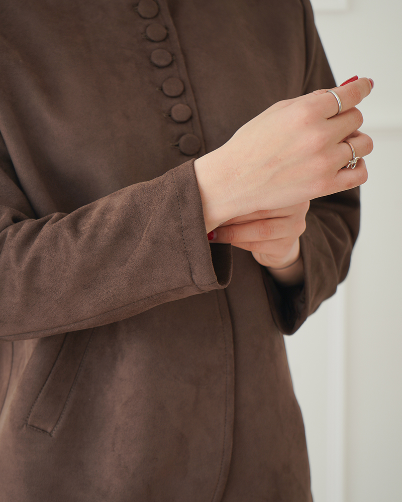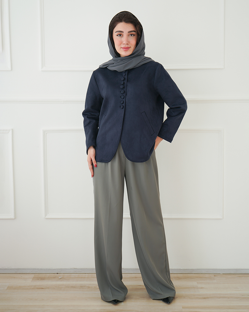 - توضیحات محصول: جنس کت سوئیت می باشد. کت یقه گرد و آستین بلند می باشد. دکمه های قسمت جلوی لباس کاربردی می باشد. کت آستر دار و دارای جیب های کاربردی است.