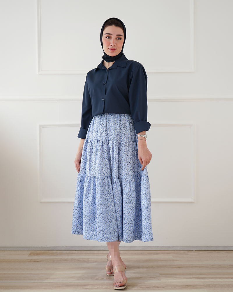 - توضیحات محصول: جنس دامن کرپ می باشد. دور کمر دامن تماما کشی می باشد. دامن طبقه ای و چین دار است. این محصول بدن نما نمی باشد.