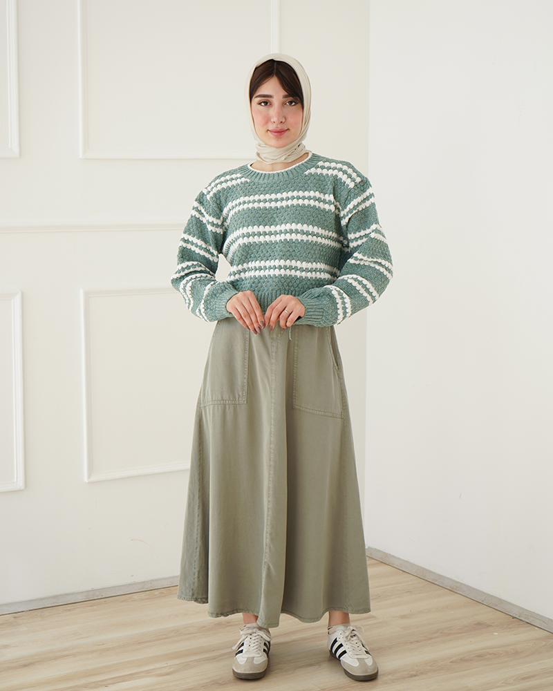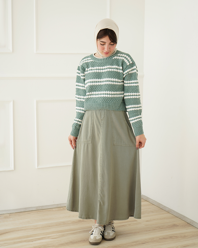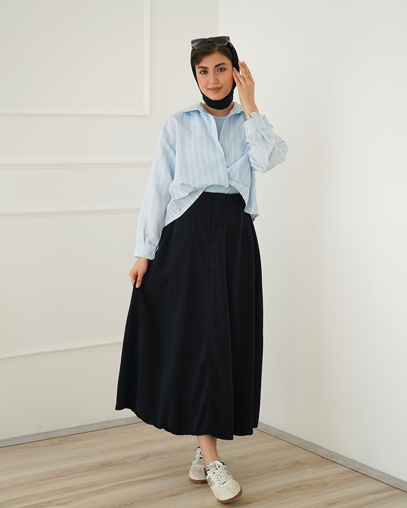- توضیحات محصول: جنس دامن کتان سیلک می باشد. کمر دامن پشت کشی بوده و دارای پل کمربند می باشد. جیب های دامن کاربردی بوده و دامن چین دار می باشد. این محصول بسیار با کیفیت و از برند رویال است.