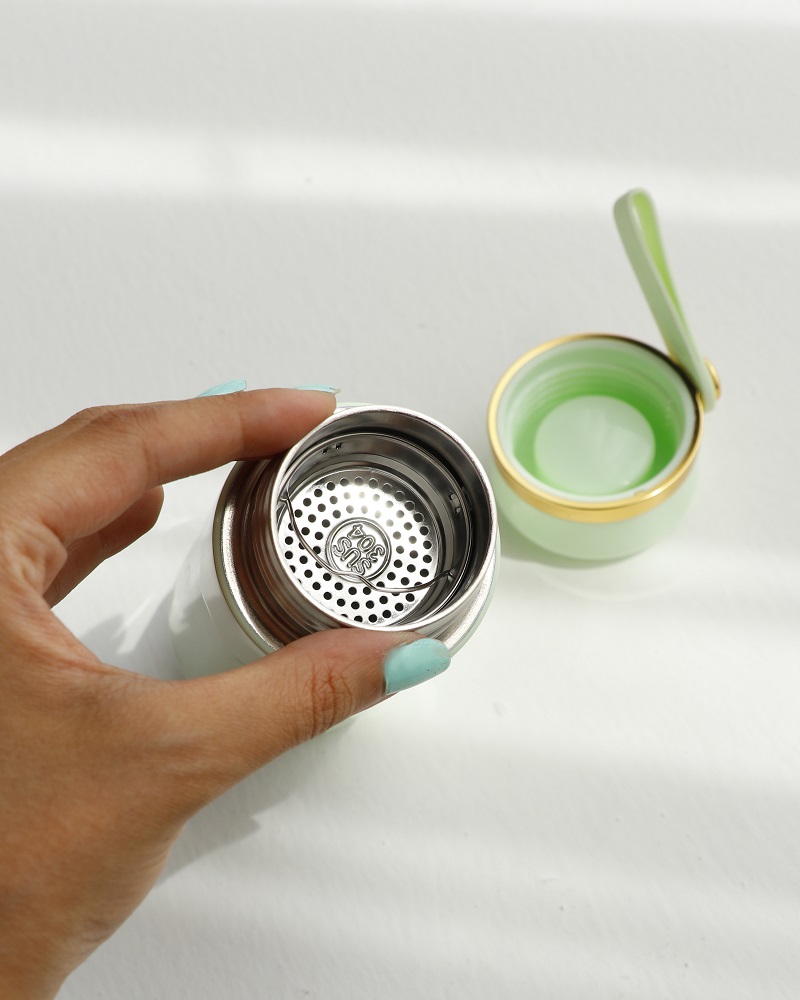 - توضیحات محصول: ارتفاع، 15 و قطر دهانه، 5 است. دارای توری تفاله گیر استیل و درب پیچی می باشد.