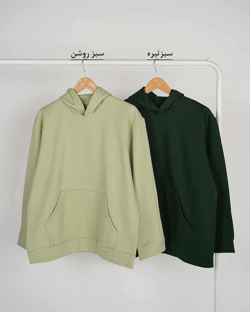 - توضیحات محصول: جنس هودی، دورس تو کرک است. هودی جیب دار و کلاهدار می باشد. کلاه هودی متصل است.