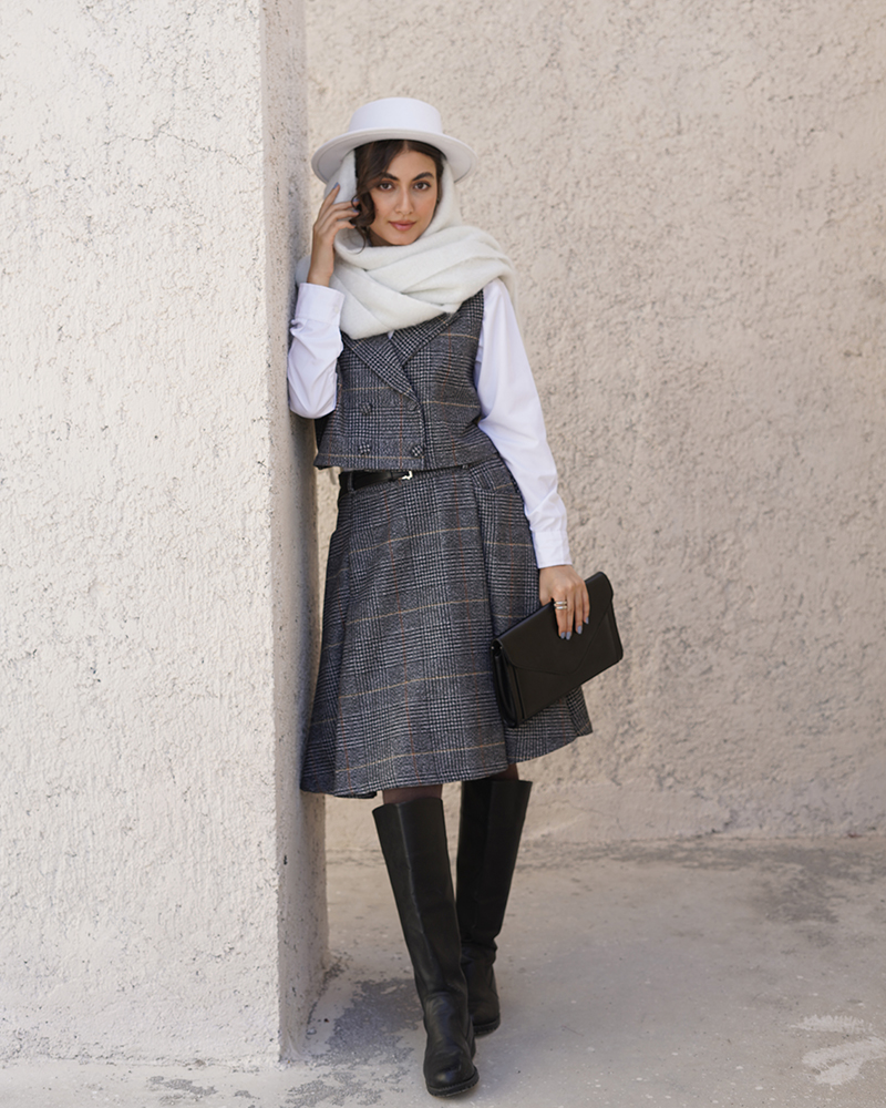 - توضیحات محصول: جنس ست پشمی می باشد. جلیقه یقه مردانه و حلقه ای می باشد. دکمه های قسمت جلوی جلیقه کاربردی می باشد. کمر دامن پشت کشی و دامن چین دار است.