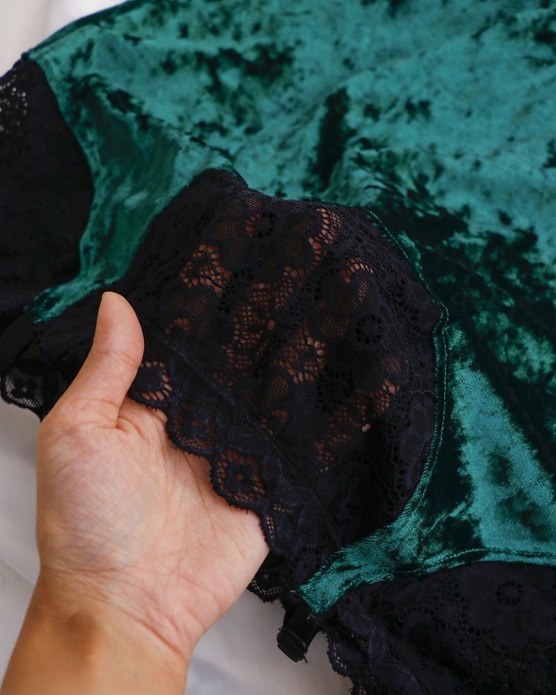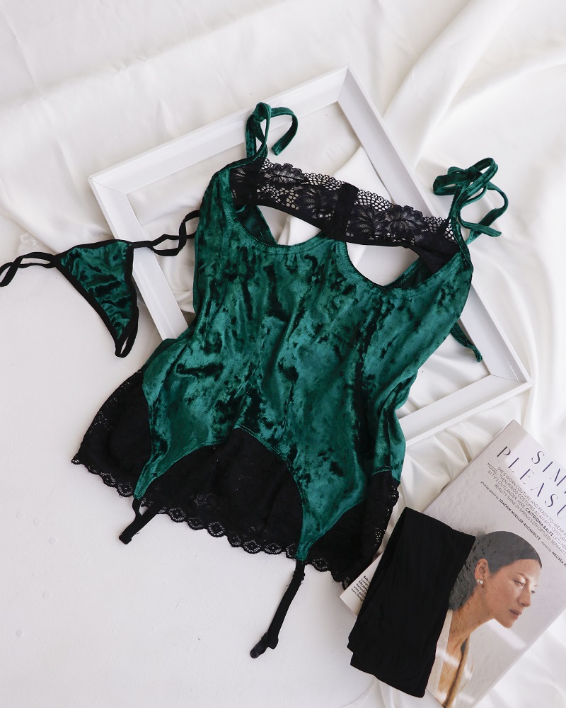 - توضیحات محصول: جنس ست، مخمل و دانتل است. فنردار و بند های سرشانه قابل تنظیم هستند. ست دارای: پیراهن، شورت لامبادا، جوراب می باشد. این محصول بدلیل مسائل بهداشتی، امکان تعویض یا مرجوع وجود ندارد.