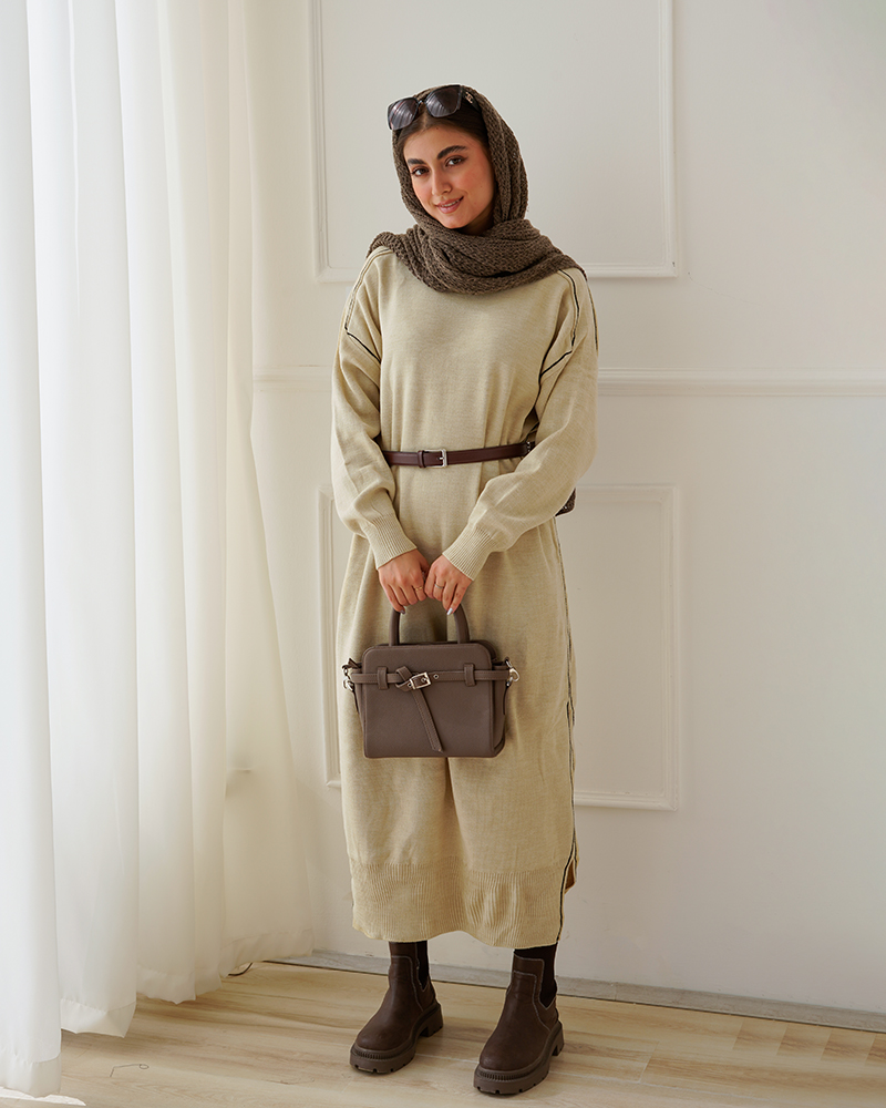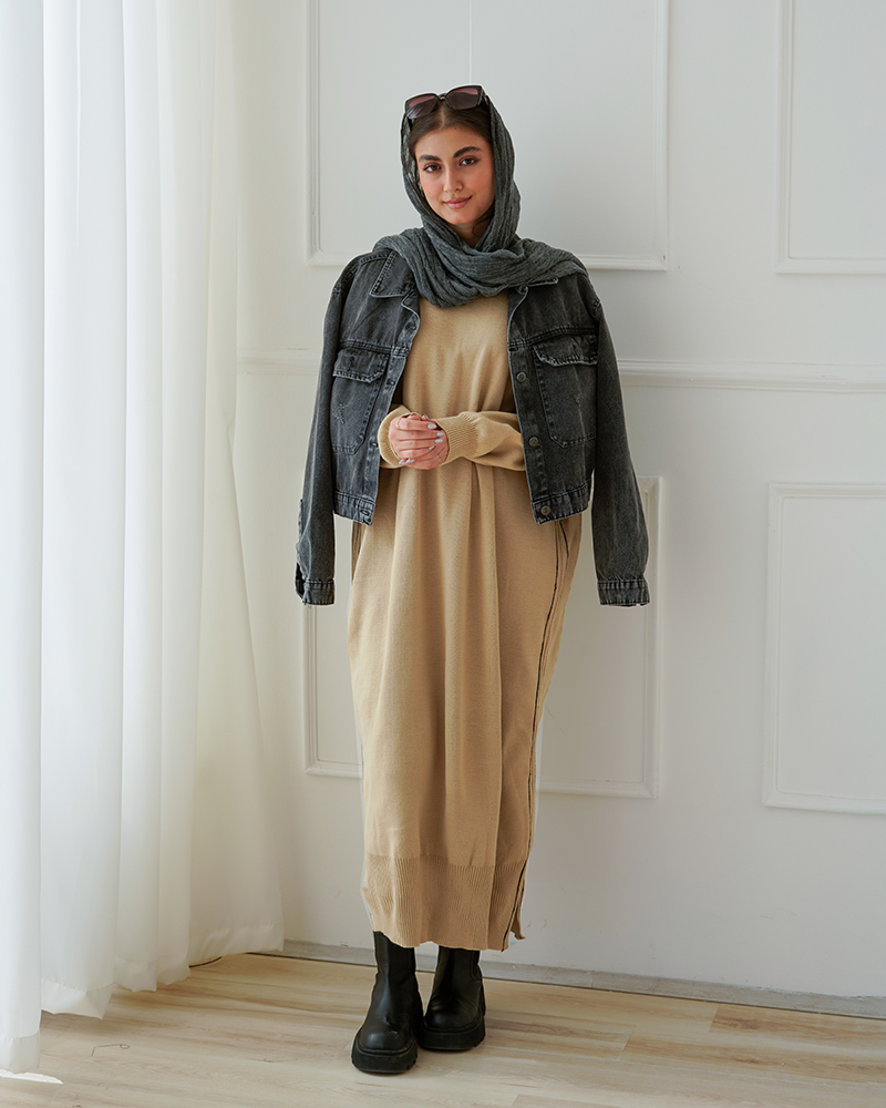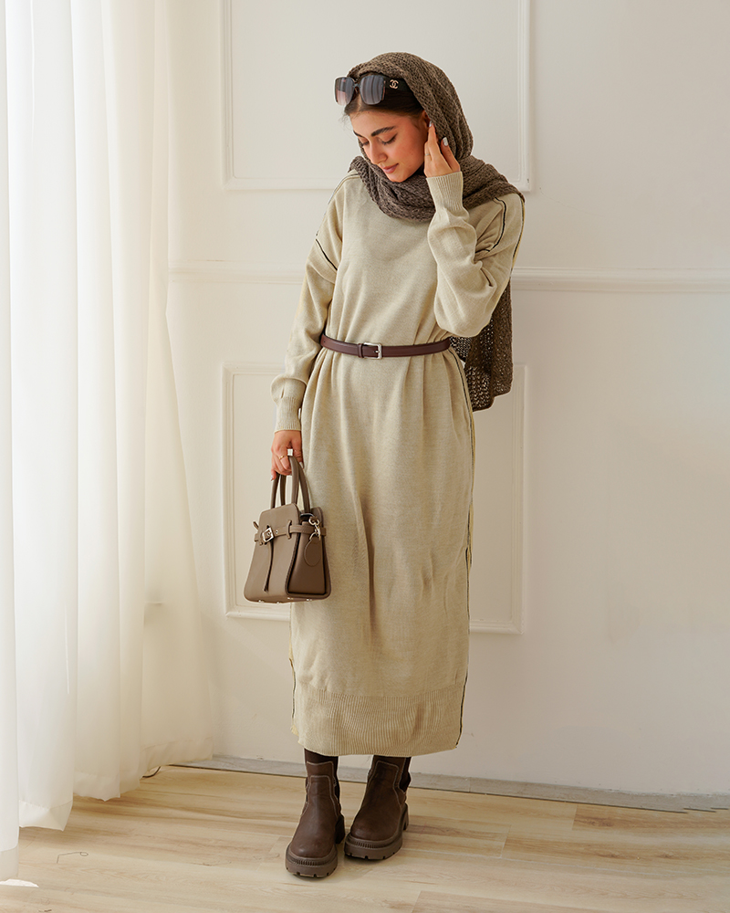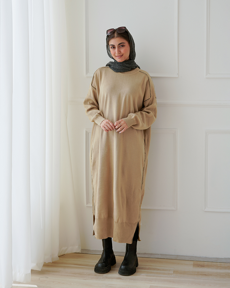 - توضیحات محصول: جنس پیراهن، بافت است. پیراهن، یقه گرد و آستین بلند می باشد. این محصول کشسانی بالایی دارد.