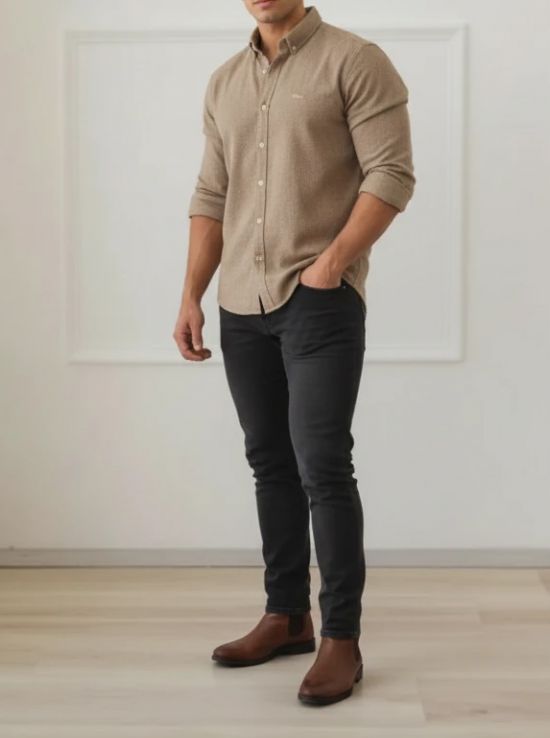- توضیحات محصول: جنس پیراهن پشمی حصیری می باشد. پیراهن یقه مردانه ،آستین بلند و جلو دکمه می باشد. دکمه های قسمت جلو و سر آستین کاربردی می باشد.
