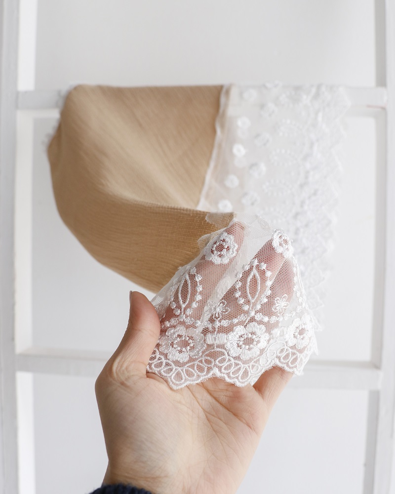 - توضیحات محصول: جنس مینی اسکارف ترکیب نخ و گیپور می باشد. ابعاد مینی اسکارف 110*53 می باشد.