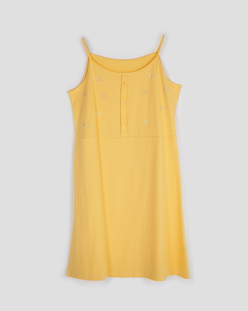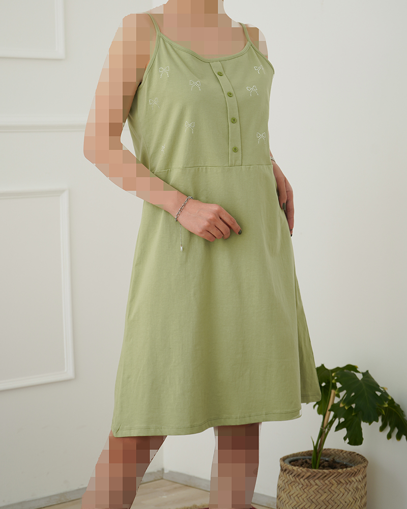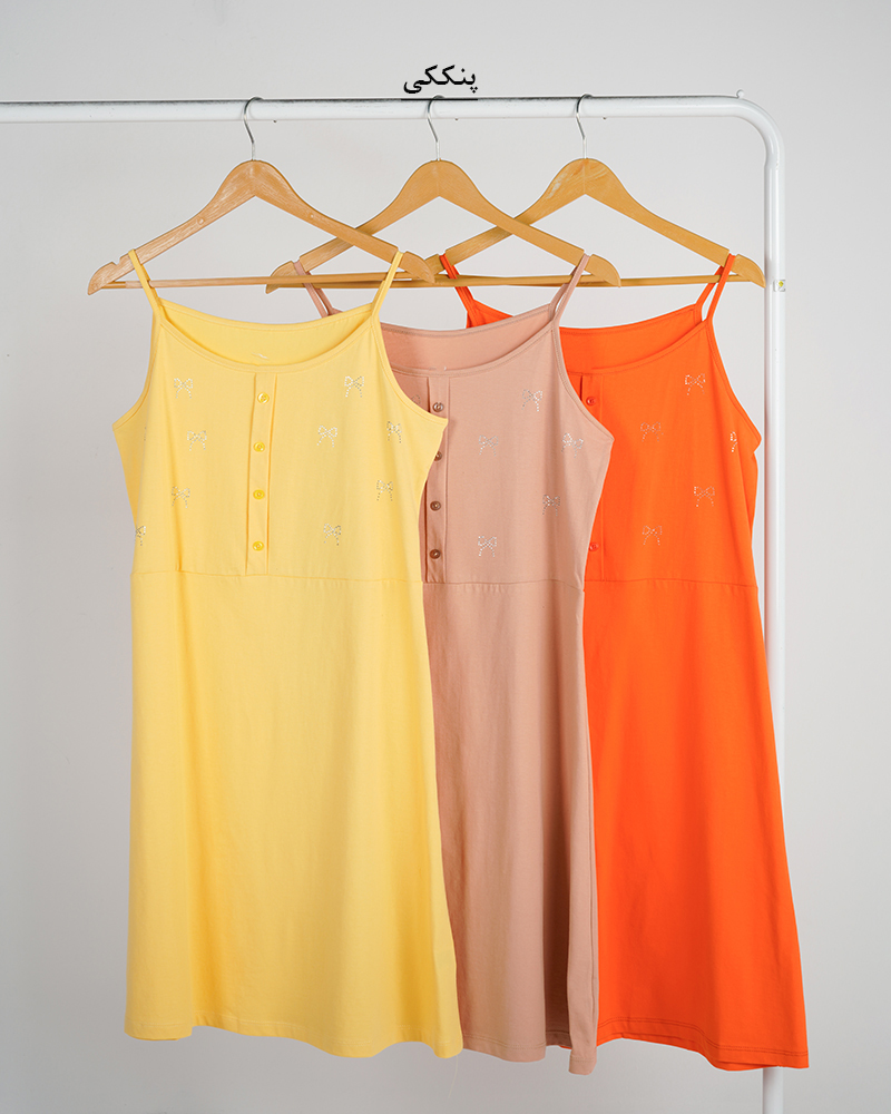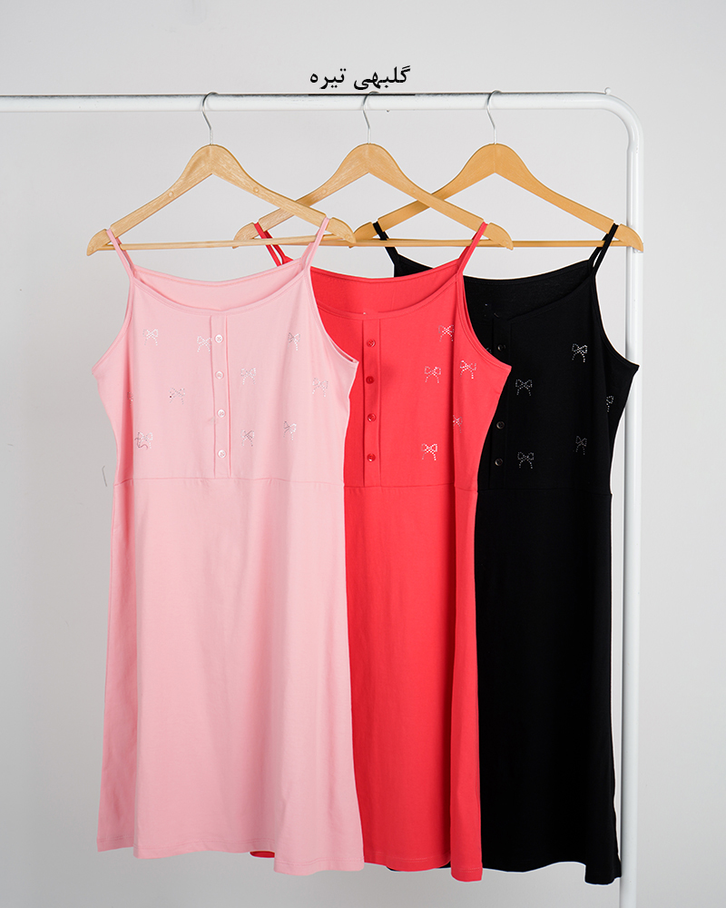 - توضیحات محصول: جنس سارافون نخ و پنبه می باشد. دکمه های روی لباس، نما هستند. سارافون بندی می باشد. روی سارافون نگین کارشده است. این سارافون بسیار خنک و راحت مناسب استفاده روزانه در منزل می باشد.