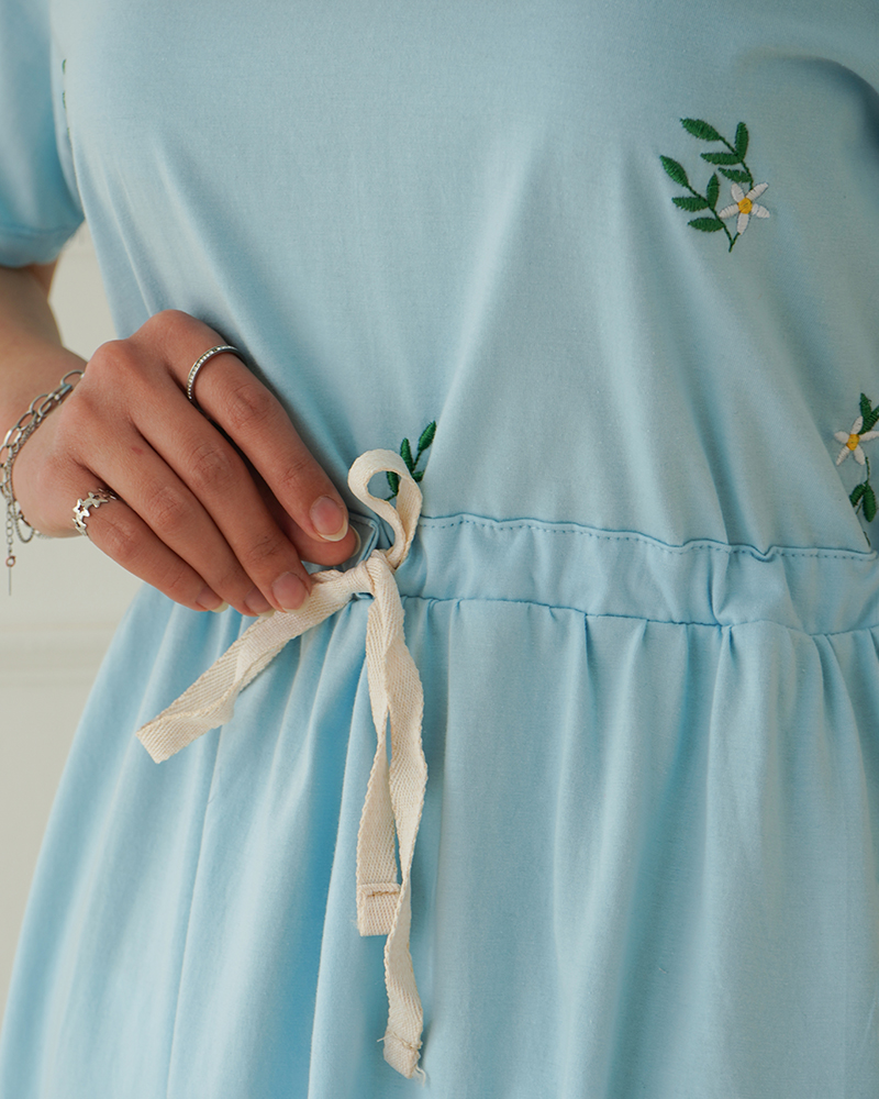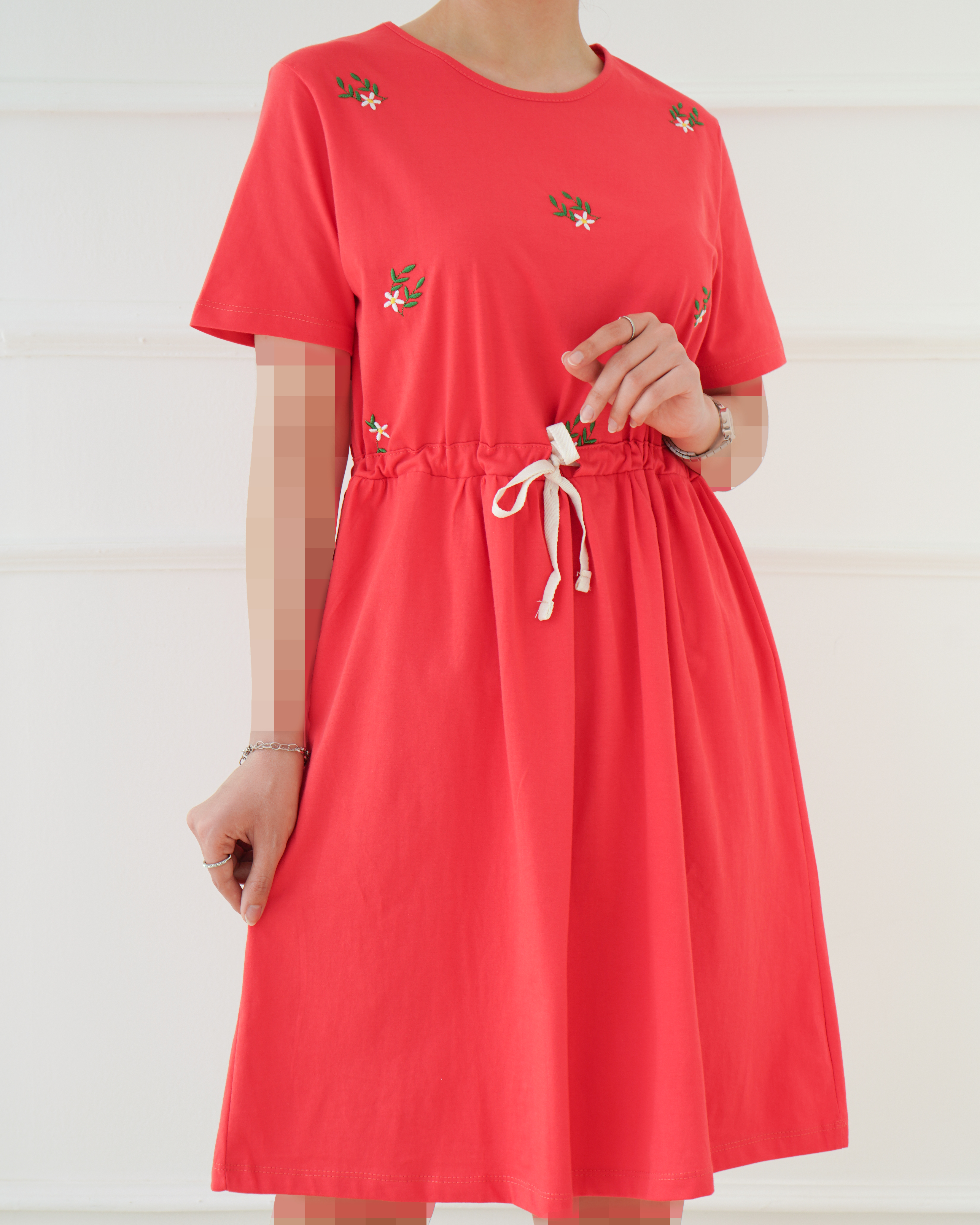 - توضیحات محصول: جنس سارافون نخ و پنبه می باشد. سارافون یقه گرد و آستین کوتاه می باشد. طرح های روی سارافون گلدوزی است. این محصول کمر گتر دار و دامن چین دار است.