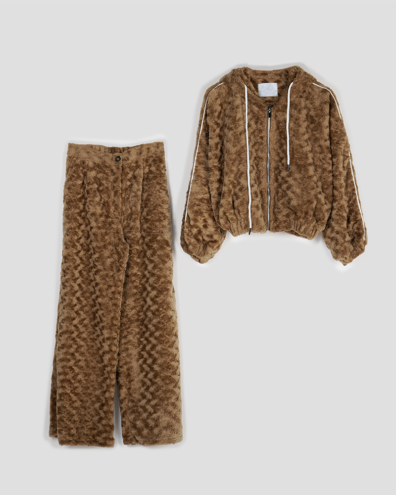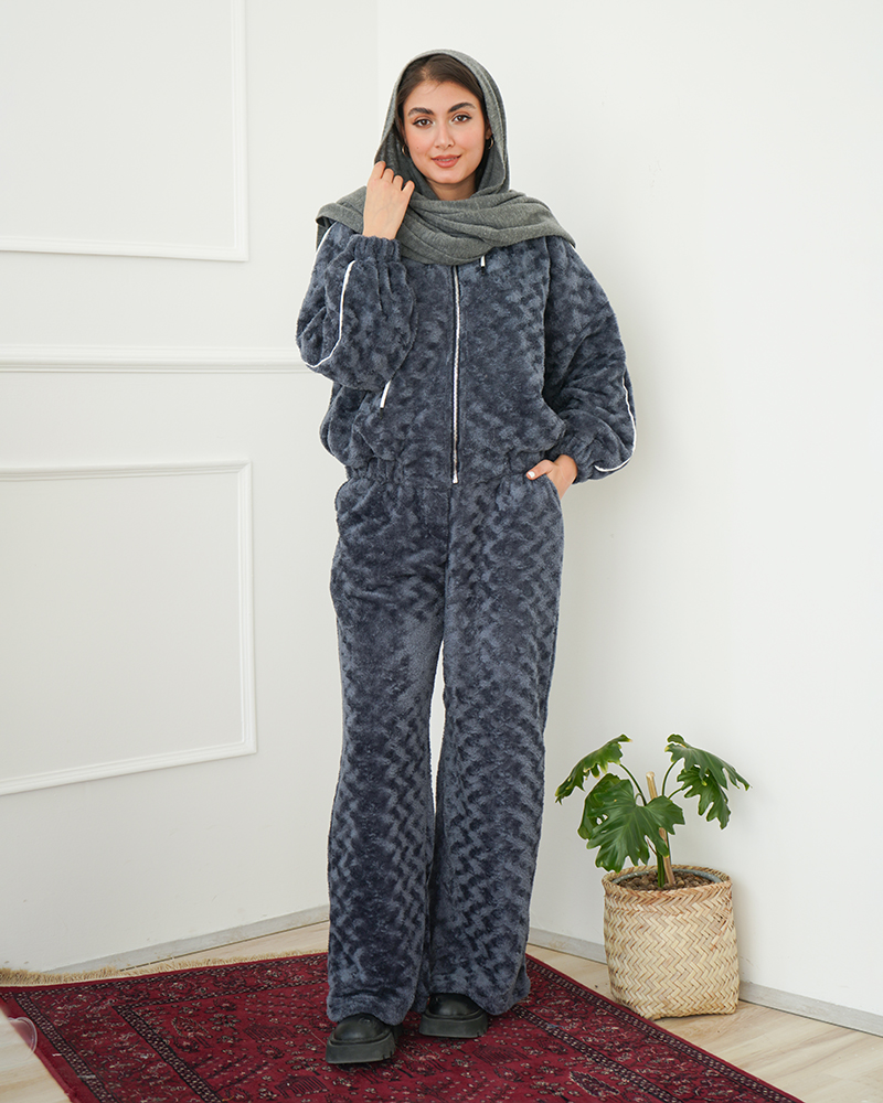 - توضیحات محصول: جنس ست، تدی است. کمر شلوار، پشت کشی و دارای دو جیب کاربردی می باشد. بامبر، آستردار است. بامبر کمر کشی و جلو زیپی است.