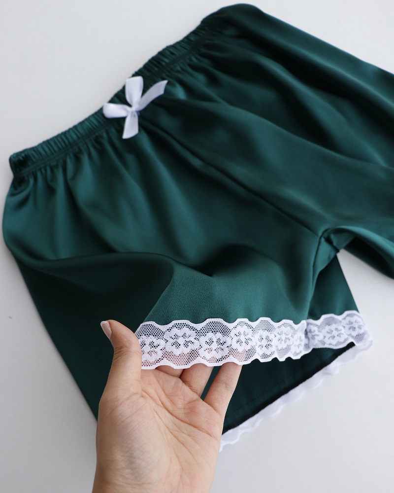 - توضیحات محصول: جنس نیم تنه، دانتل و شورتک، ساتن است. کمر شورتک تماما کشی می باشد. این محصول بدلیل مسائل بهداشتی، امکان تعویض یا مرجوع وجود ندارد.