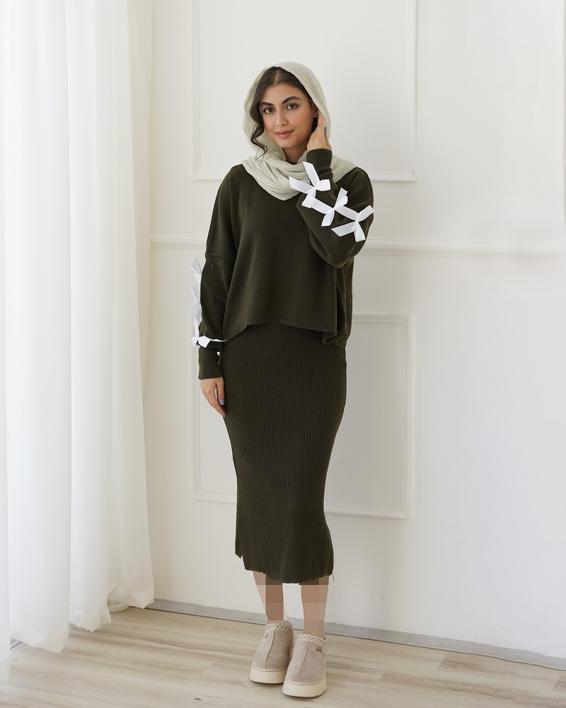 - توضیحات محصول: جنس ست، بافت است. پاپیون های روی آستین، دوخته شده است. ست، کشسانی بالایی دارد.