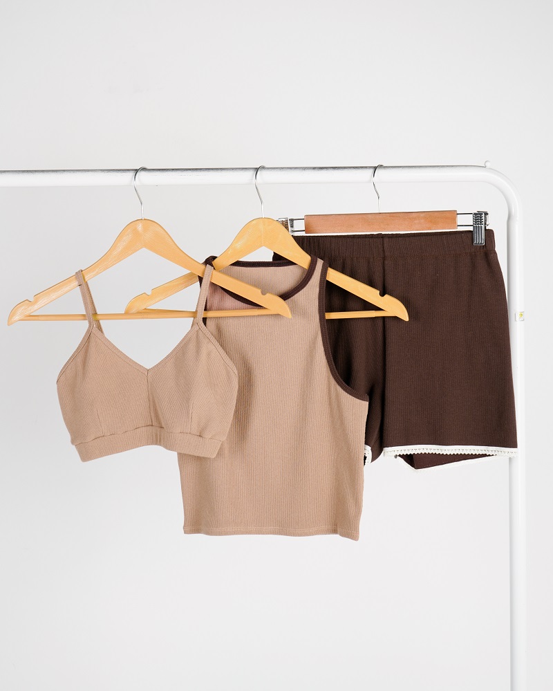 - توضیحات محصول: جنس ست، نخ پنبه کبریتی است. نیم تنه بندی می باشد. ست دارای : تاپ، نیم تنه و شورتک است.