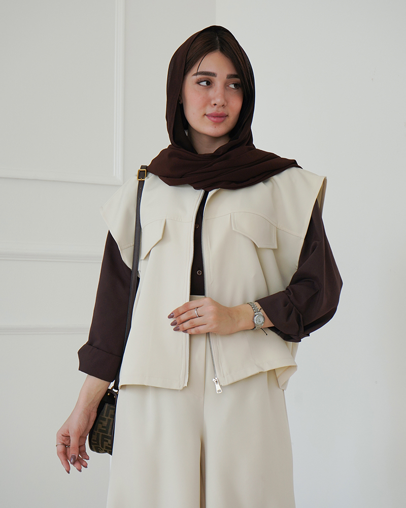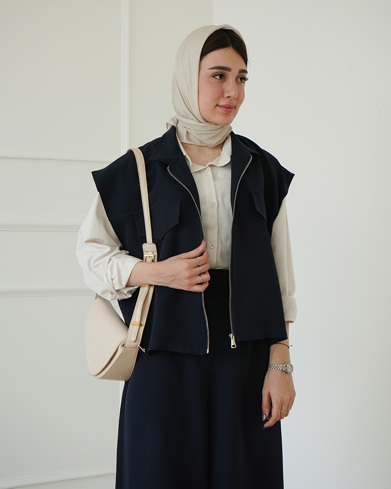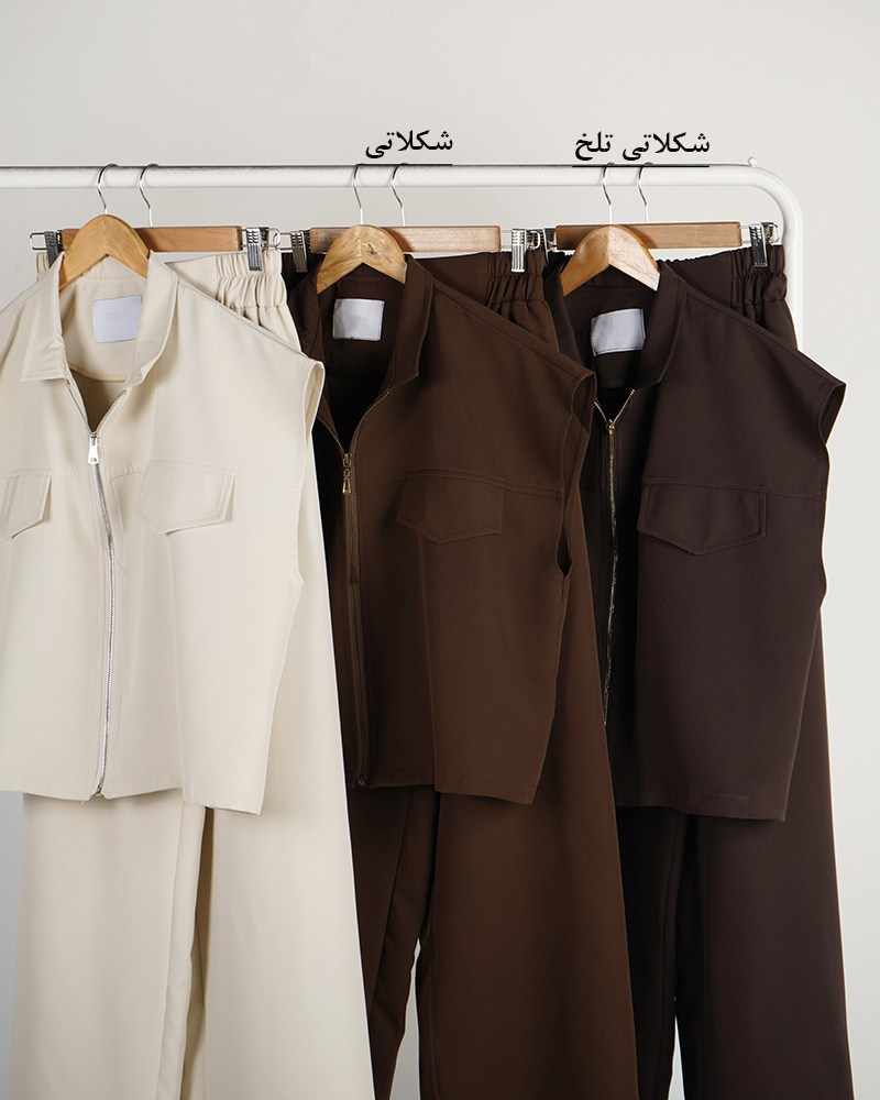 - توضیحات محصول: جنس ست کرپ مازراتی می باشد. ست شامل یک وست و یک شلوار است. وست جلو زیپی ،یقه مردانه و آستین حلقه ای می باشد. جیب های ست نما هستند. کمر شلوار این ست پشت کشی و تنخور شلوار بگ است.