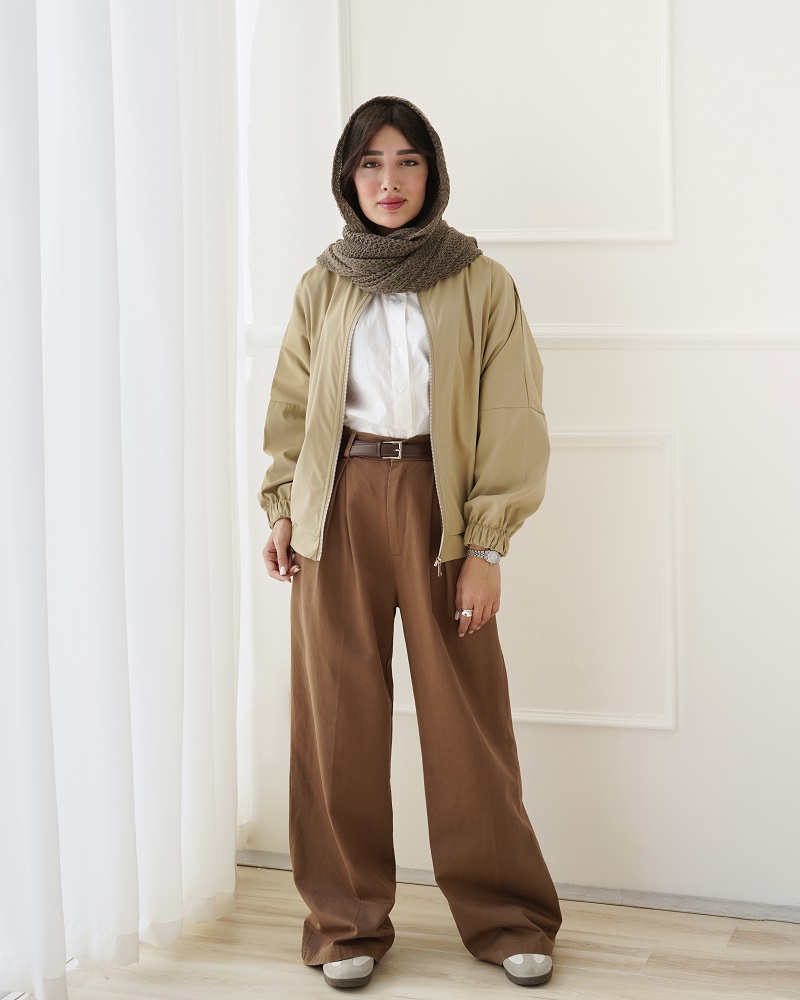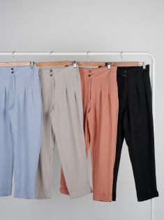- توضیحات محصول: جنس شلوار، کجراه است. کمر شلوار پشت کشی می باشد. جلوی شلوار، دکمه و زیپ برای شهولت در پرو کارشده است. شلوار دارای دو جیب کاربردی و بندینک (جای کمربند) می باشد.