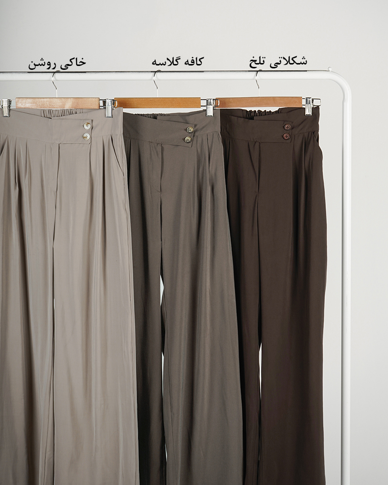 - توضیحات محصول: جنس شلوار سیلک می باشد. کمر شلار پشت کشی و دکمه ای است. تنخور شلوار بگ بوده و جیب های شلوار کاربردی می باشد. تنخور شلوار بگ است.