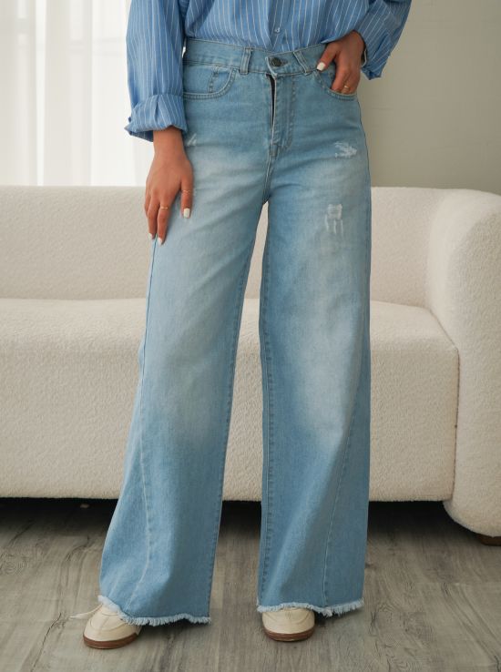 - توضیحات محصول: جنس شلوار جین می باشد. کمر شلوار دکمه ای است. شلوار فاقد کشسانی می باشد. تنخور شلوار شافل است.