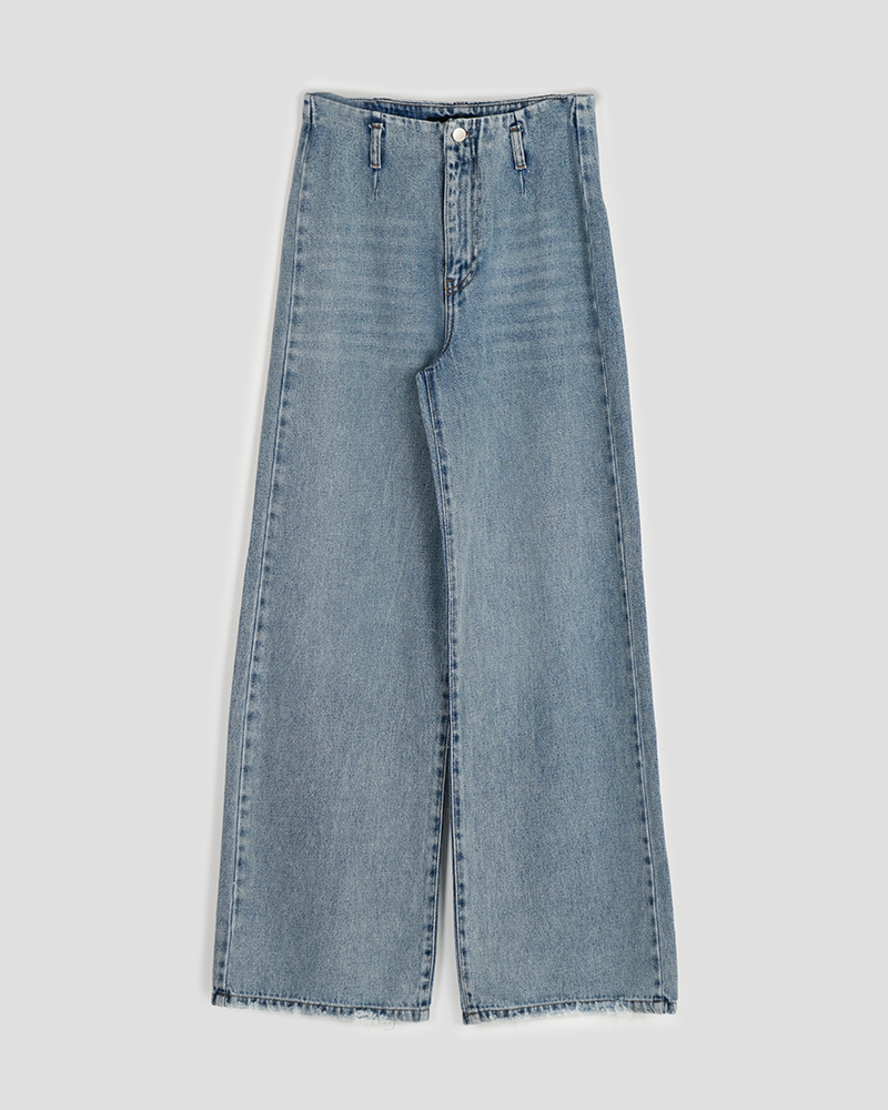 - توضیحات محصول: جنس شلوار جین می باشد. کمر شلوار فاقد کشسانی بوده و دکمه ای است. شلوار جین از برند رویال می باشد. تنخور شلوار واید لگ می باشد.