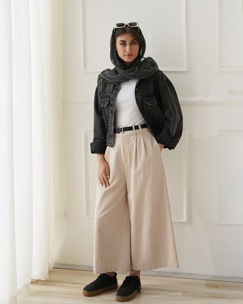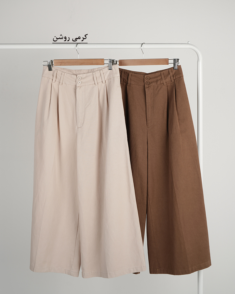 - توضیحات محصول: جنس شلوار کتان کجراه می باشد. شلوار فاقد کشسانی بوده و تنخور آن واید لگ است. کمر شلوار دکمه ای و دارای پل کمربند می باشد. این محصول دارای دو جیب مخفی کاربردی می باشد.