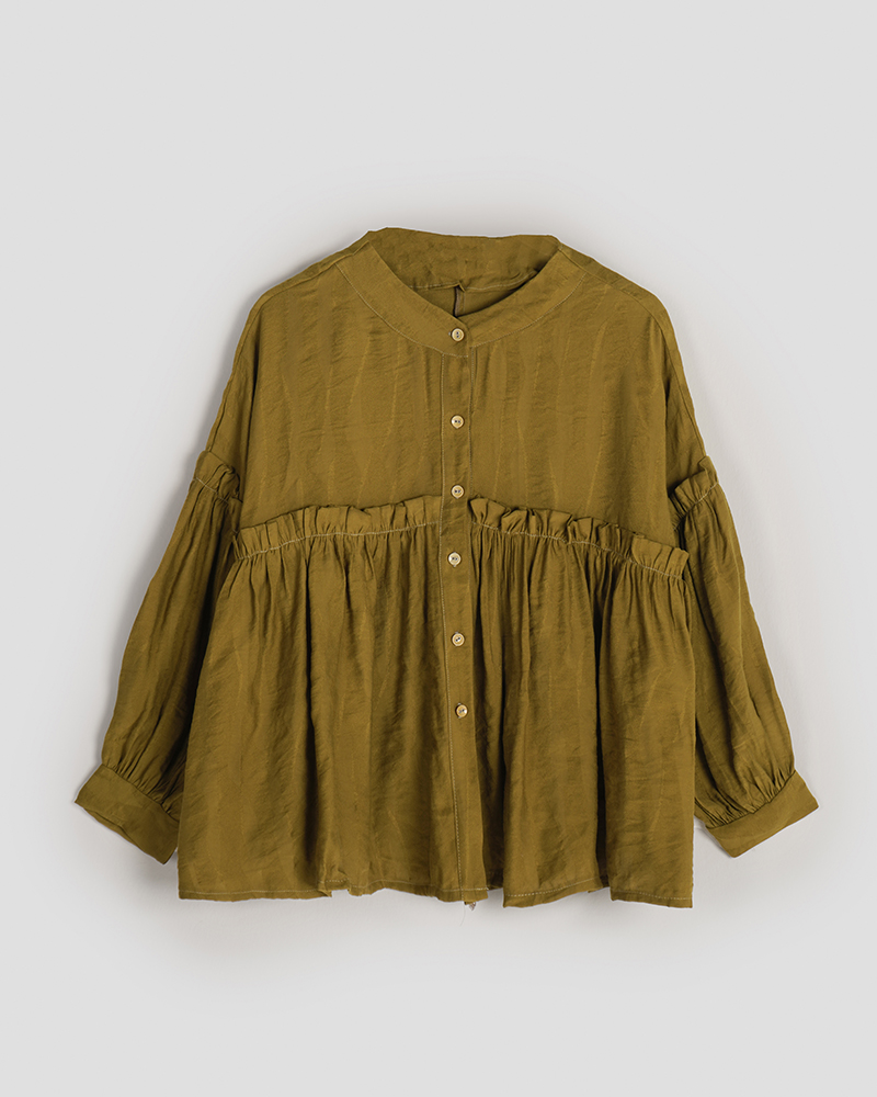 - توضیحات محصول: جنس شومیز، کتیبه است. شومیز عروسکی و چین دار می باشد. دکمه های جلوی شومیز، کاربردی است. میزان آبرفت از طریق جدول راهنمای سایز قابل مشاهده است.