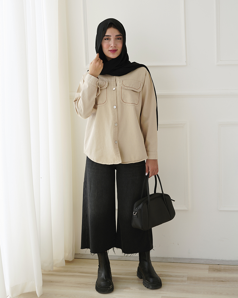 - توضیحات محصول: جنس شومیز کتان می باشد. شومیز یقه مردانه ،آستین بلند و دارای دو جیب کاربردی می باشد. دکمه های این محصول در قسمت سر آستین و جلو کاربردی می باشد. این محصول بسیار با کیفیت و راحت مناسب استفاده روزمره است.