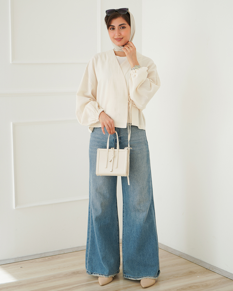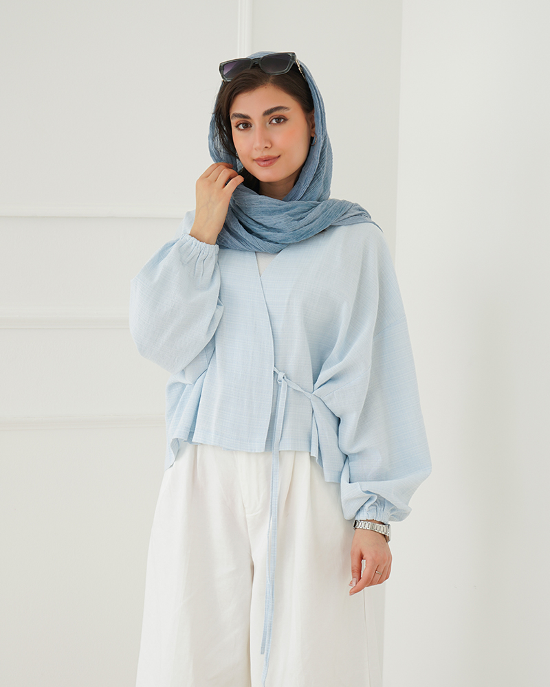 - توضیحات محصول: جنس شومیز لینن نخی می باشد. شومیز یقه هفت و جلو بندی می باشد. بند جلو شومیز کاربردی بوده و قابل تنظیم سایز می باشد.میزان آبرفت از طریق جدول راهنمای سایز قابل مشاهده است.